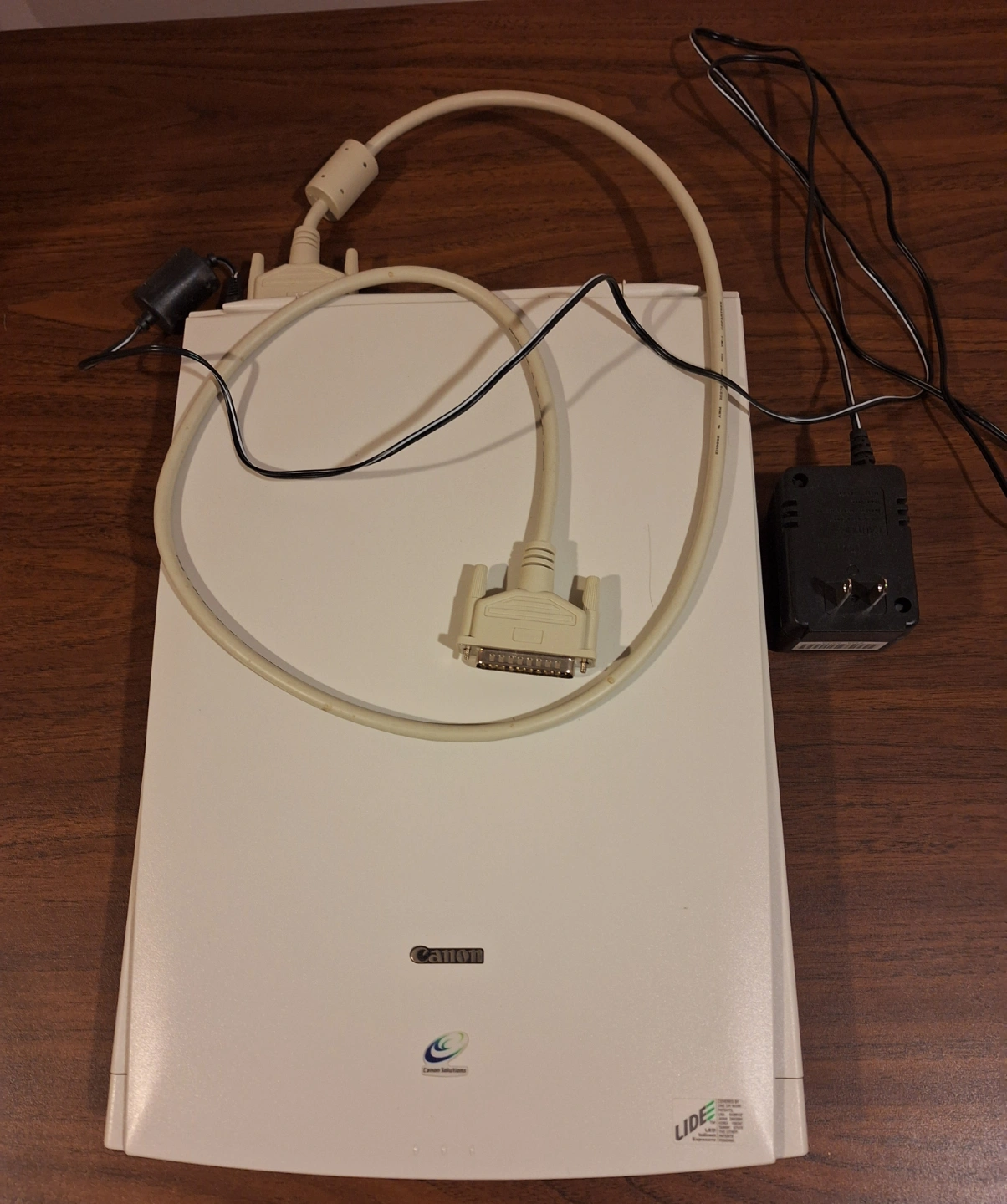 Canon flatbed scanner. Includes power adapter and parallel cable. Manual included. Pickup Scarborough Pharmacy/Ellesmere area.