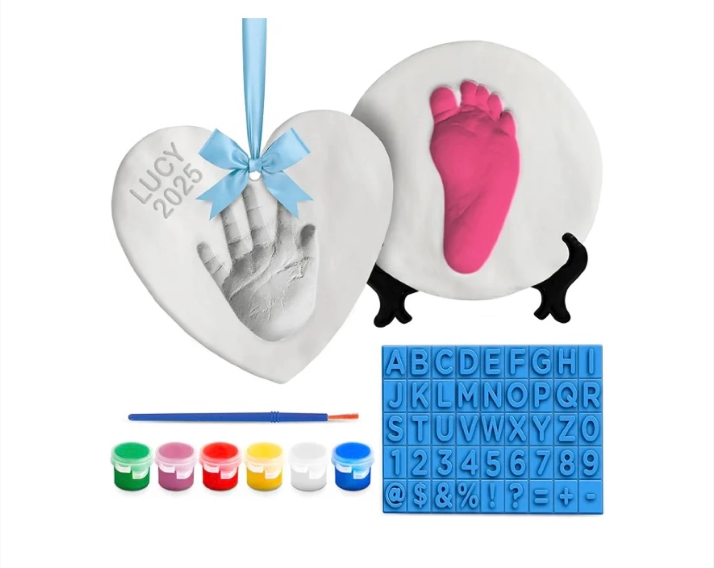 New baby ornament kit. Makes two keepsake ornaments. Includes paints. Ages 0-9 months. Great gift.