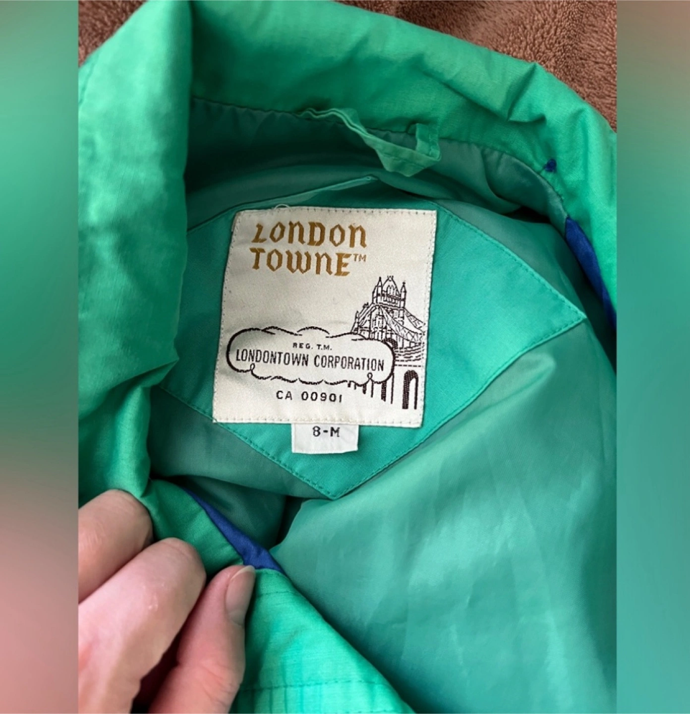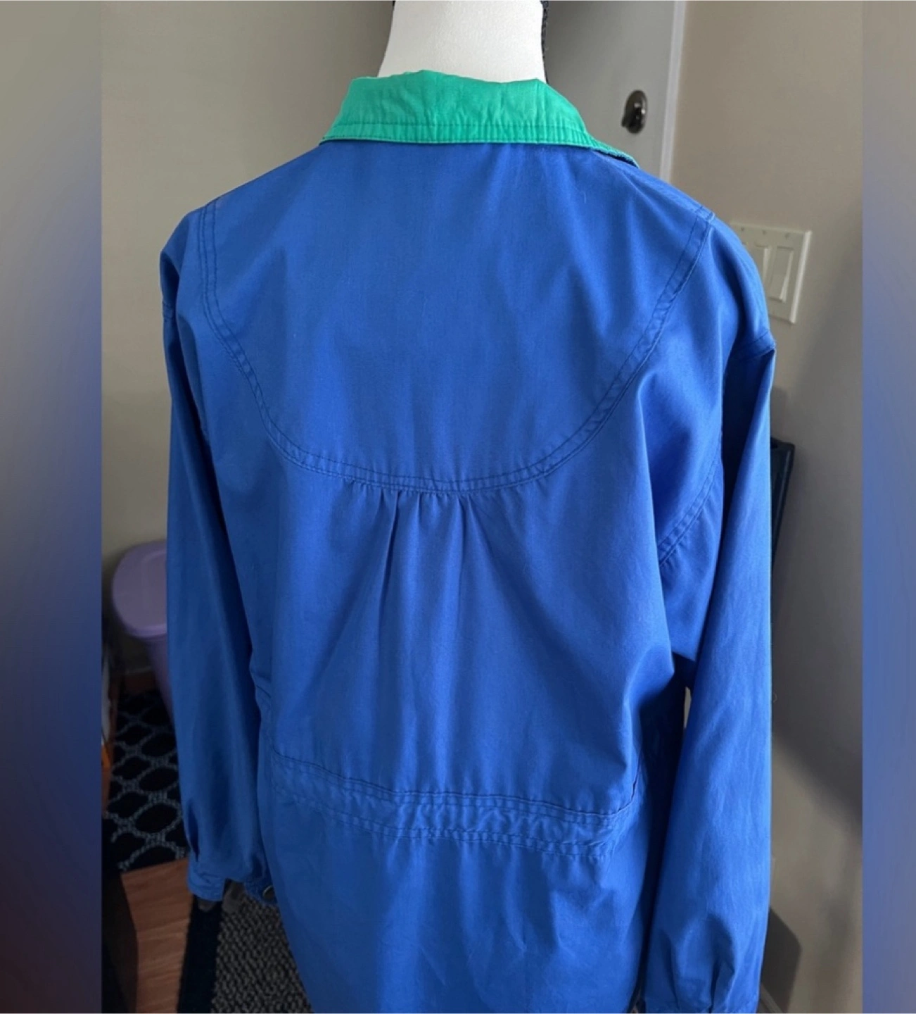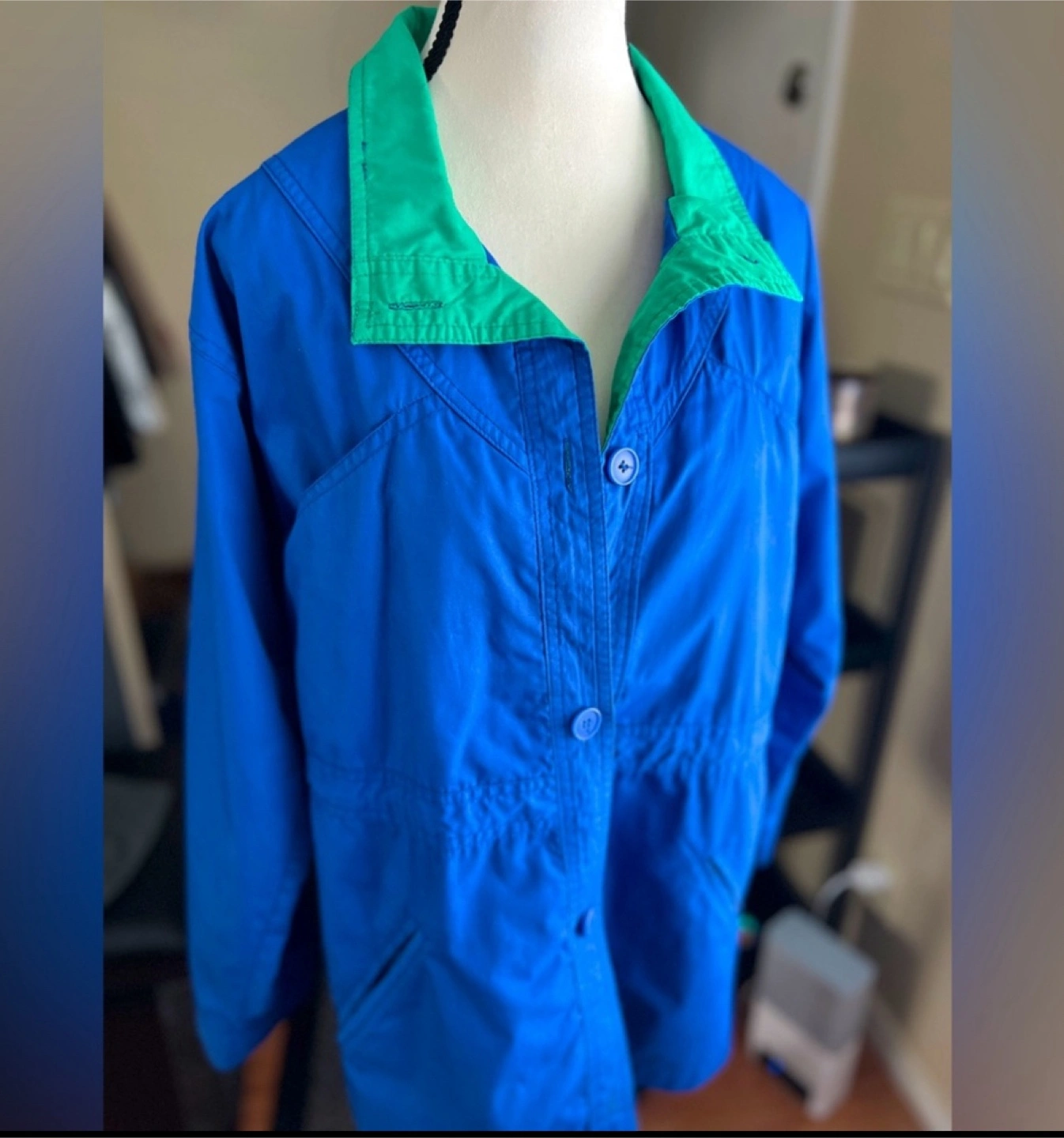 Women's long-sleeve button-up jacket. Size 8 (M) Outer Shell - Cotton & Polyester Inner Lining - nylon Drawstring waist. Pockets.