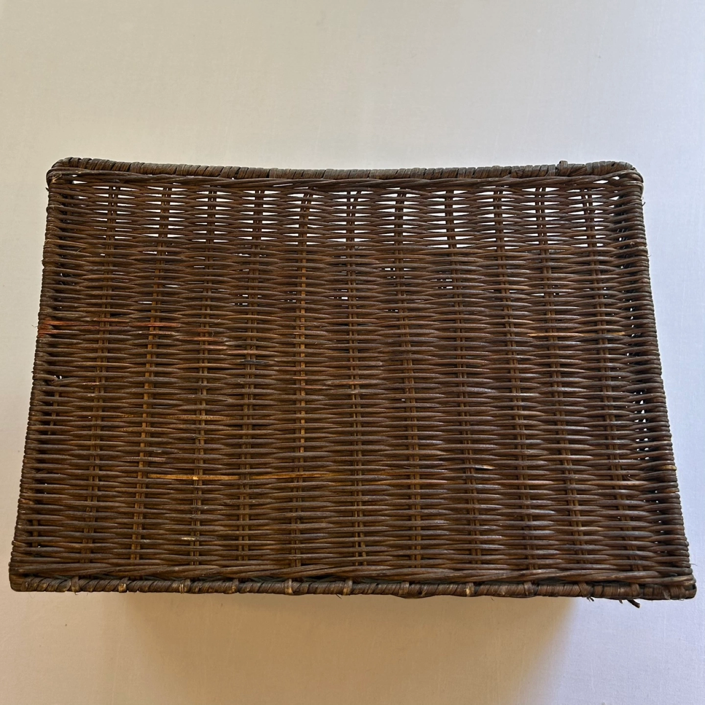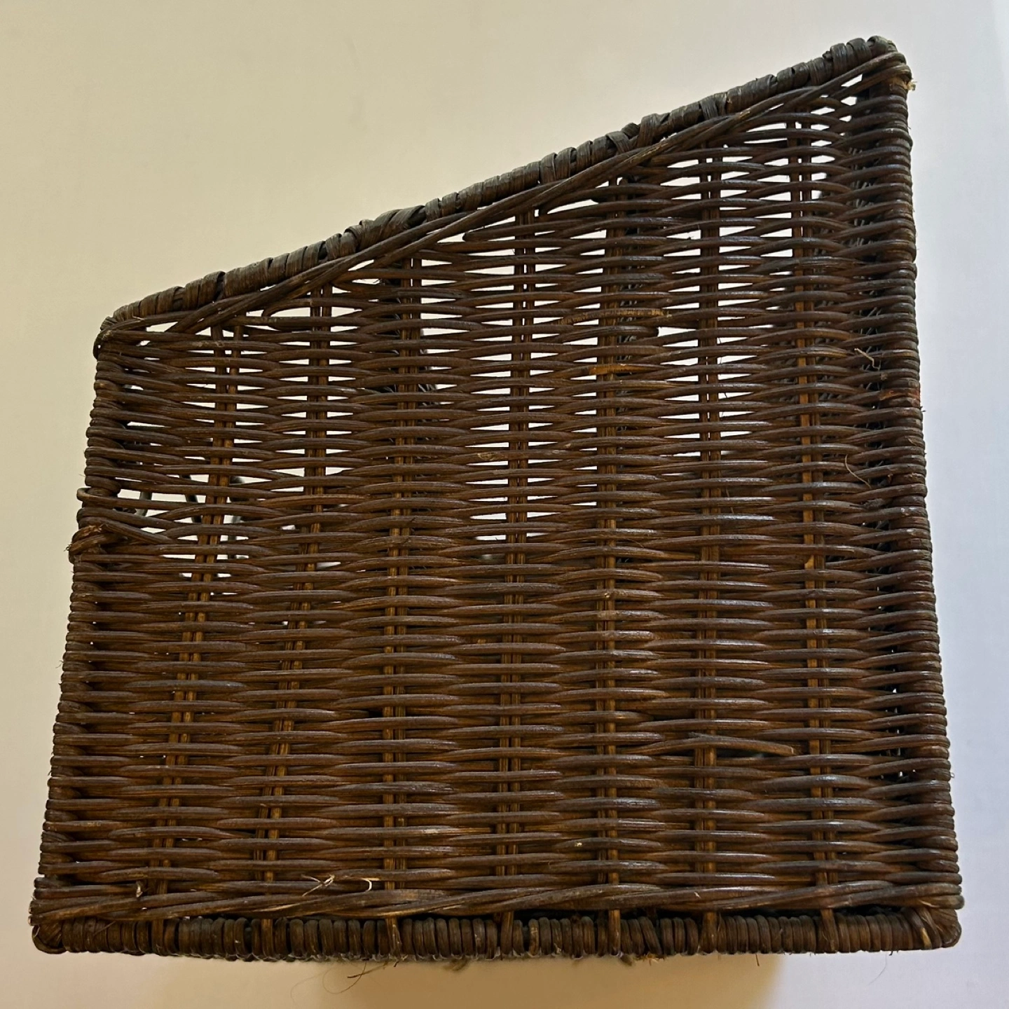 Organize your desk in style with this Pier 1 Imports rattan wicker woven desk organizer featuring 4 slots for optimal storage. This charming organizer is in used condition, but it still has plenty of life left and adds a touch of rustic elegance to any workspace.
