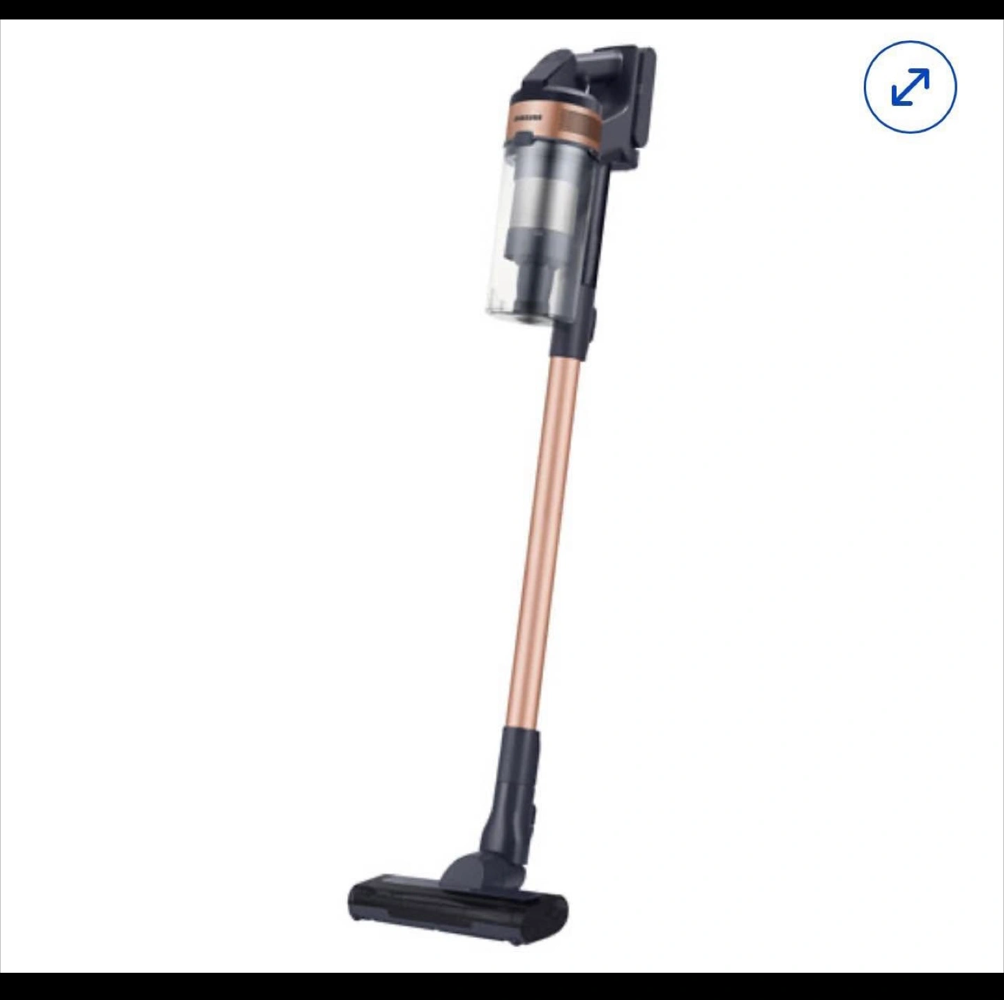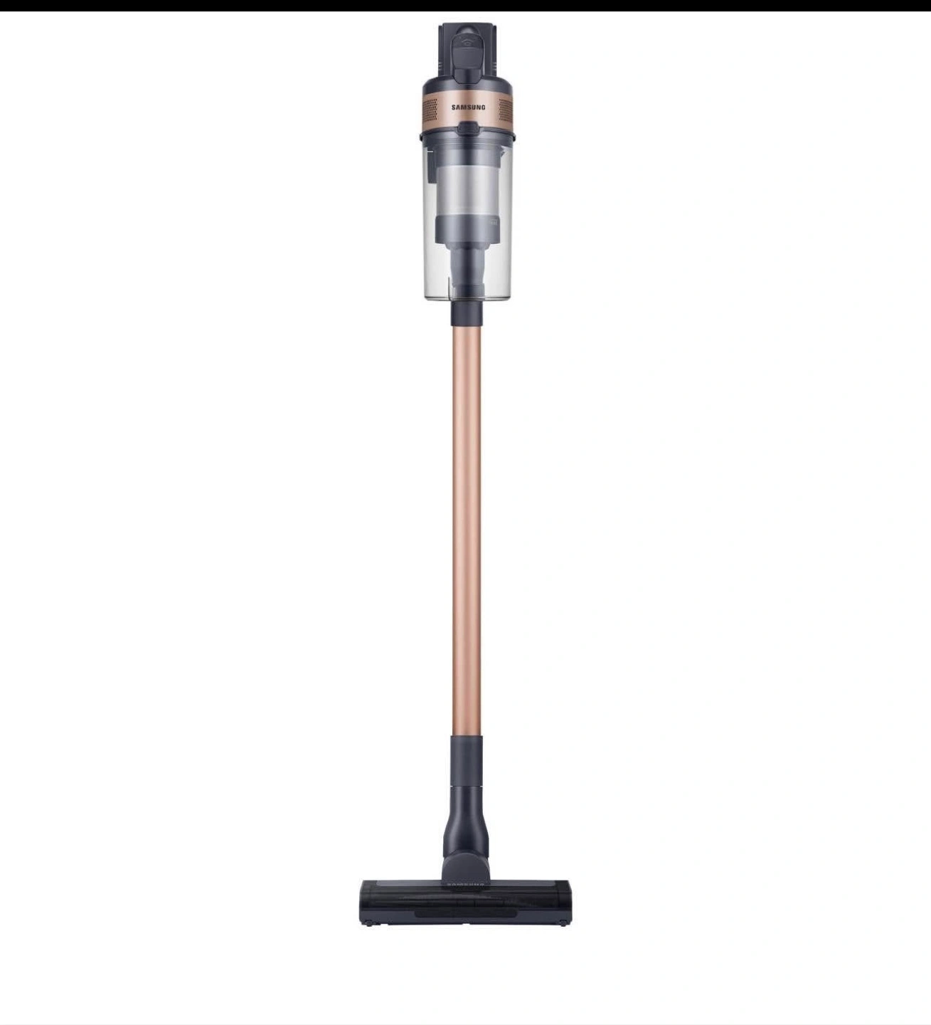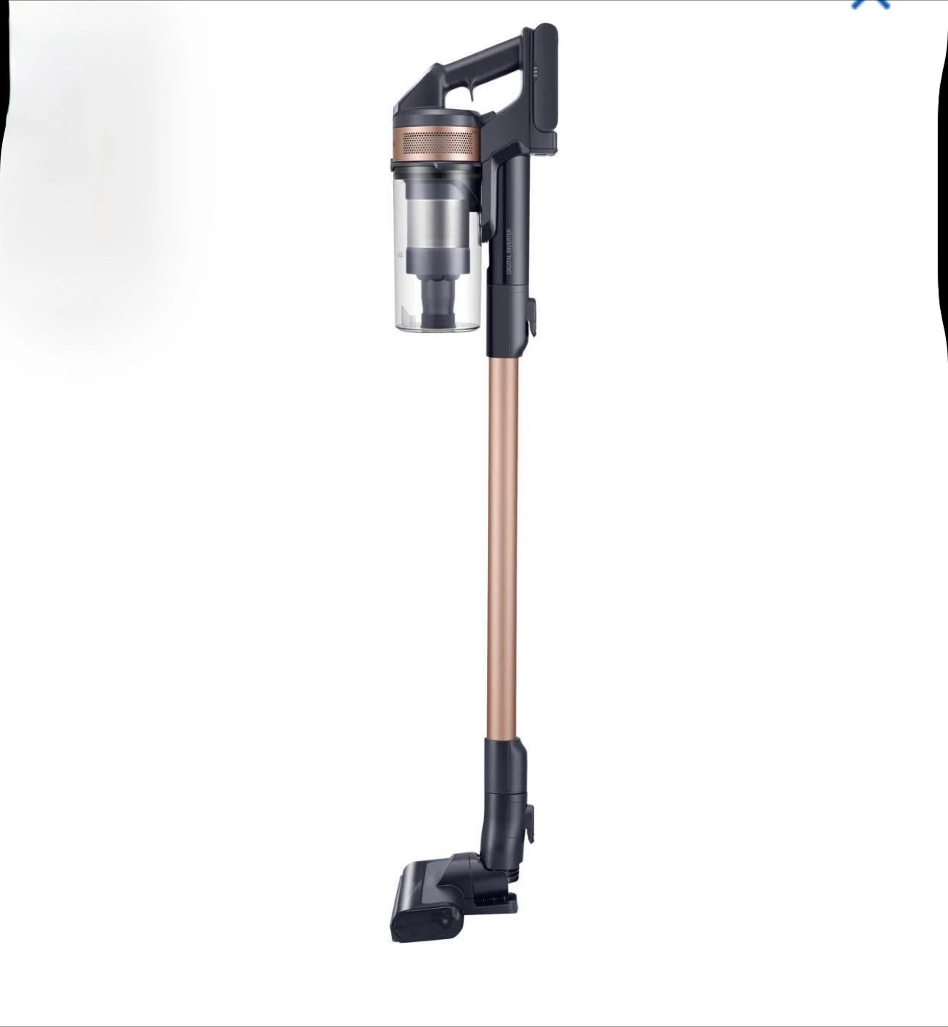 Lightweight cordless stick vacuum. Rose gold and dark grey colour scheme. Powerful suction. Easy to empty dustbin. Multiple cleaning attachments.