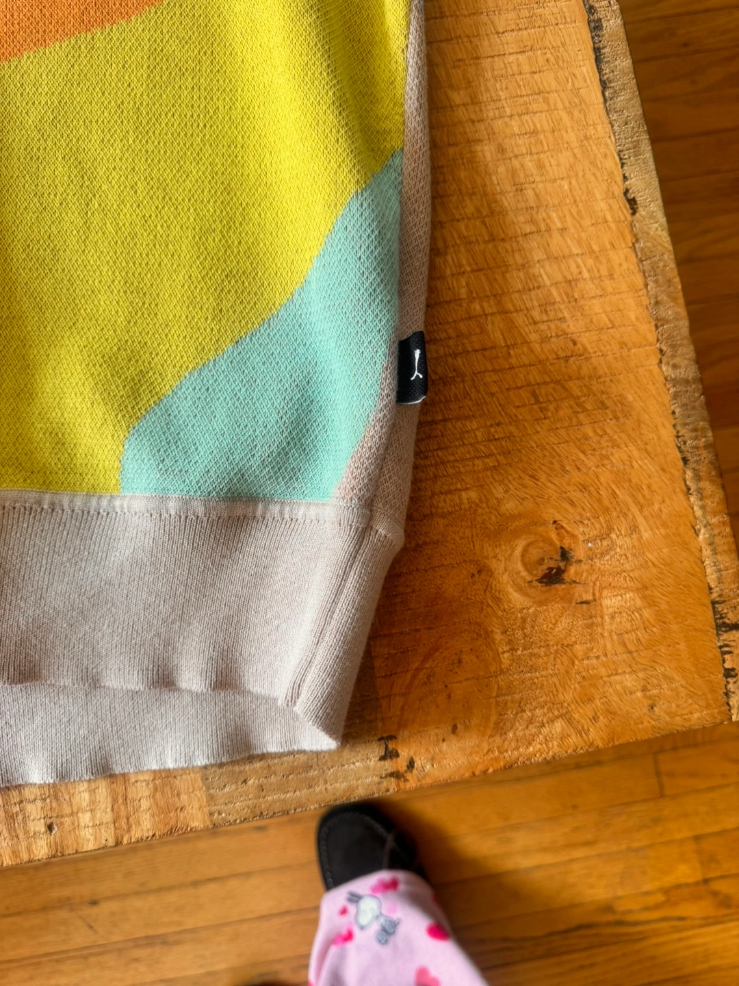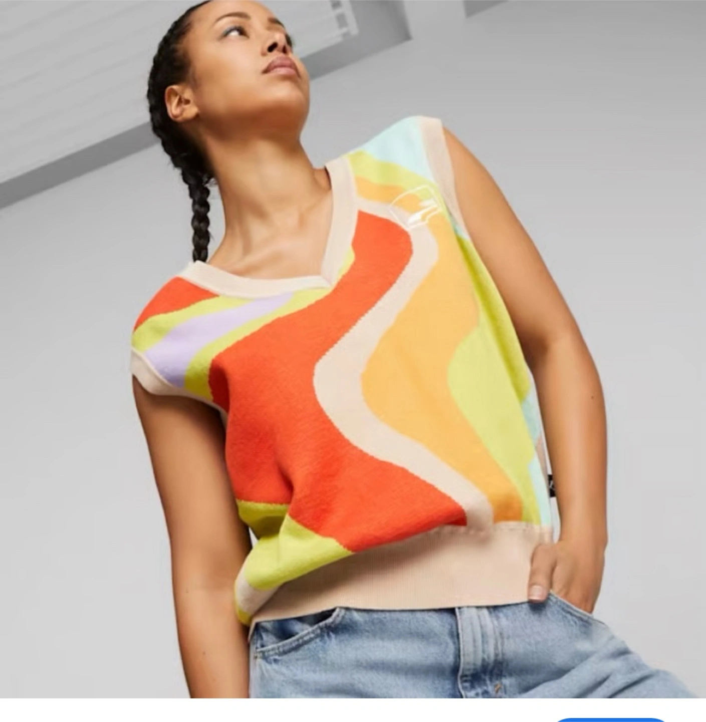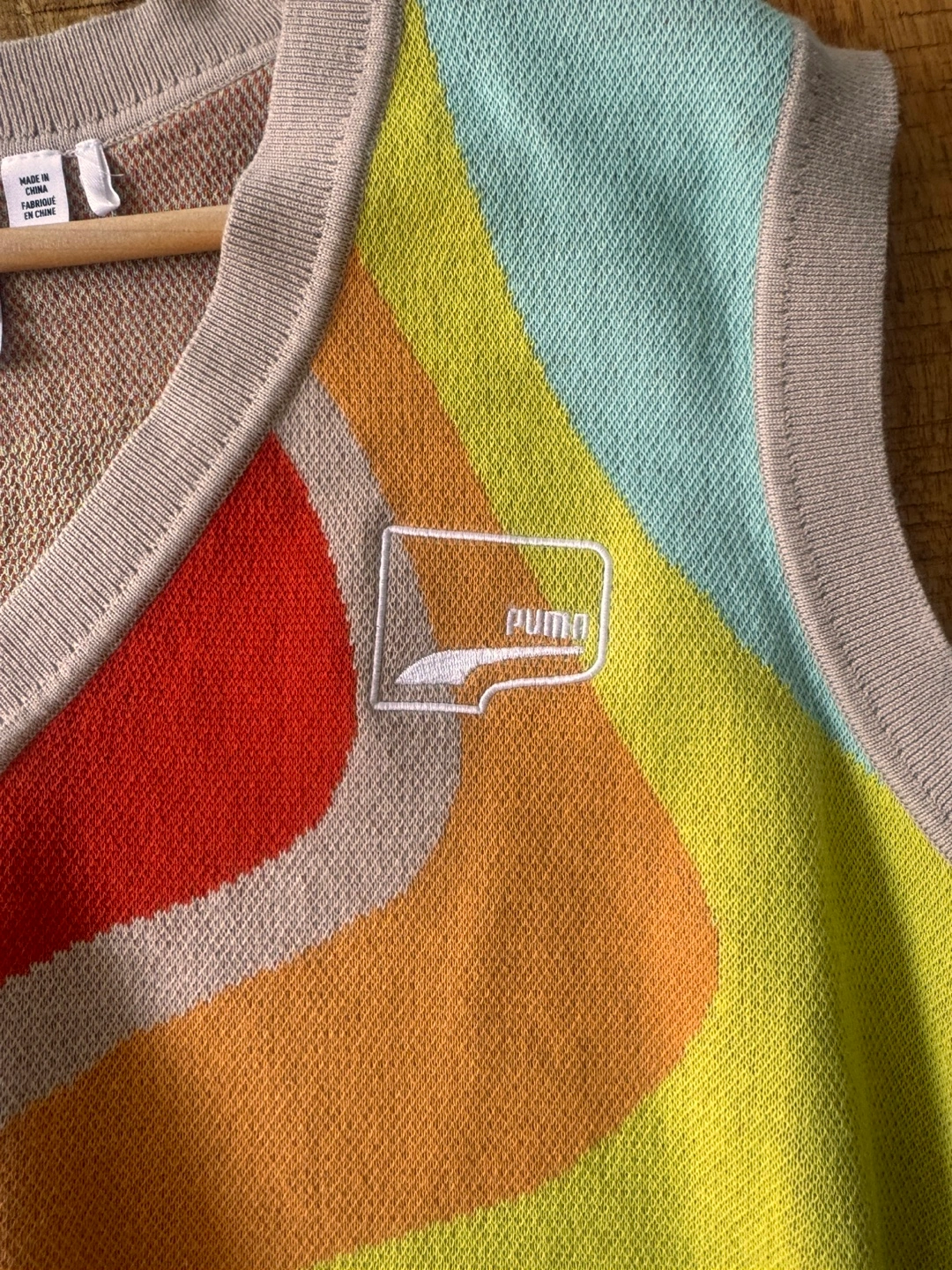 Colorful knit vest. V-neck. Sleeveless. Abstract pattern. Made in China. Size XS.