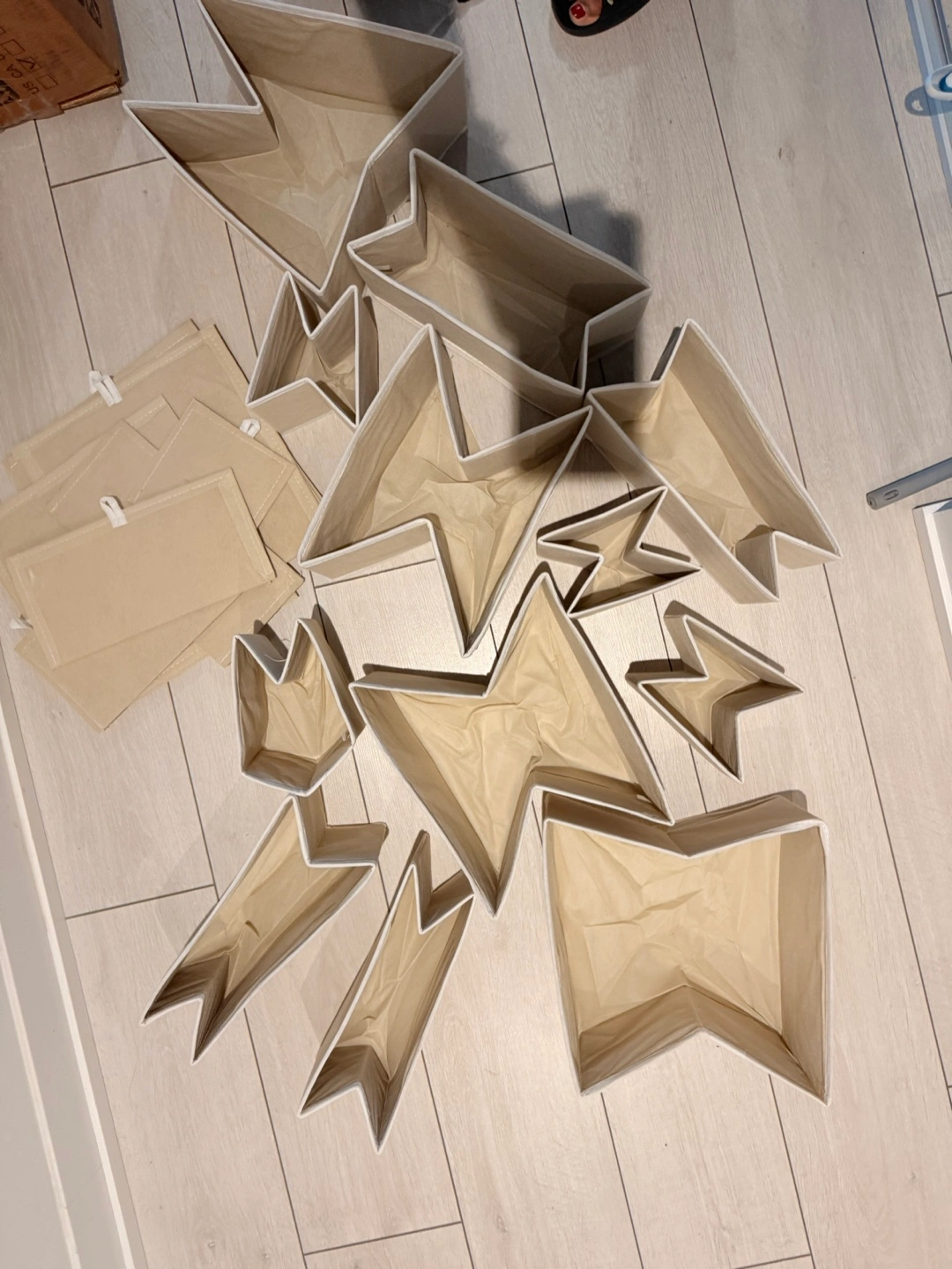 Selling a collection of beige storage bins! They're perfect for organizing any space in your home. Different sizes and shapes, ready to help you declutter and keep things tidy