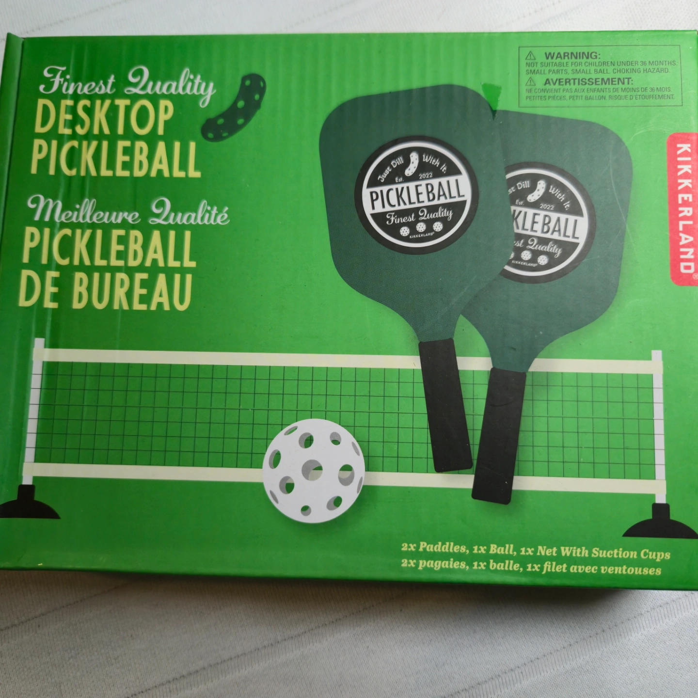 Buy & Sell🥕KIKKERLAND Finest Quality Desktop Pickleball Set🥕KIKKERLAND Finest Quality Desktop Pickleball Set$10.80New in box. Includes two paddles, one ball, one net with suction cups. Perfect for desk games.ConditionNewWHERE TO MEETLawrence-Dufferin Burger KingView MapSELLERMigzYorkdale251 review1 chats·1 favorites·32 viewsSEND CHAT TO SELLERHi Migz! I’m interested in your listing.Hi Migz! I’m interested in your listing.Get the Karrot app to chatSign In to chat