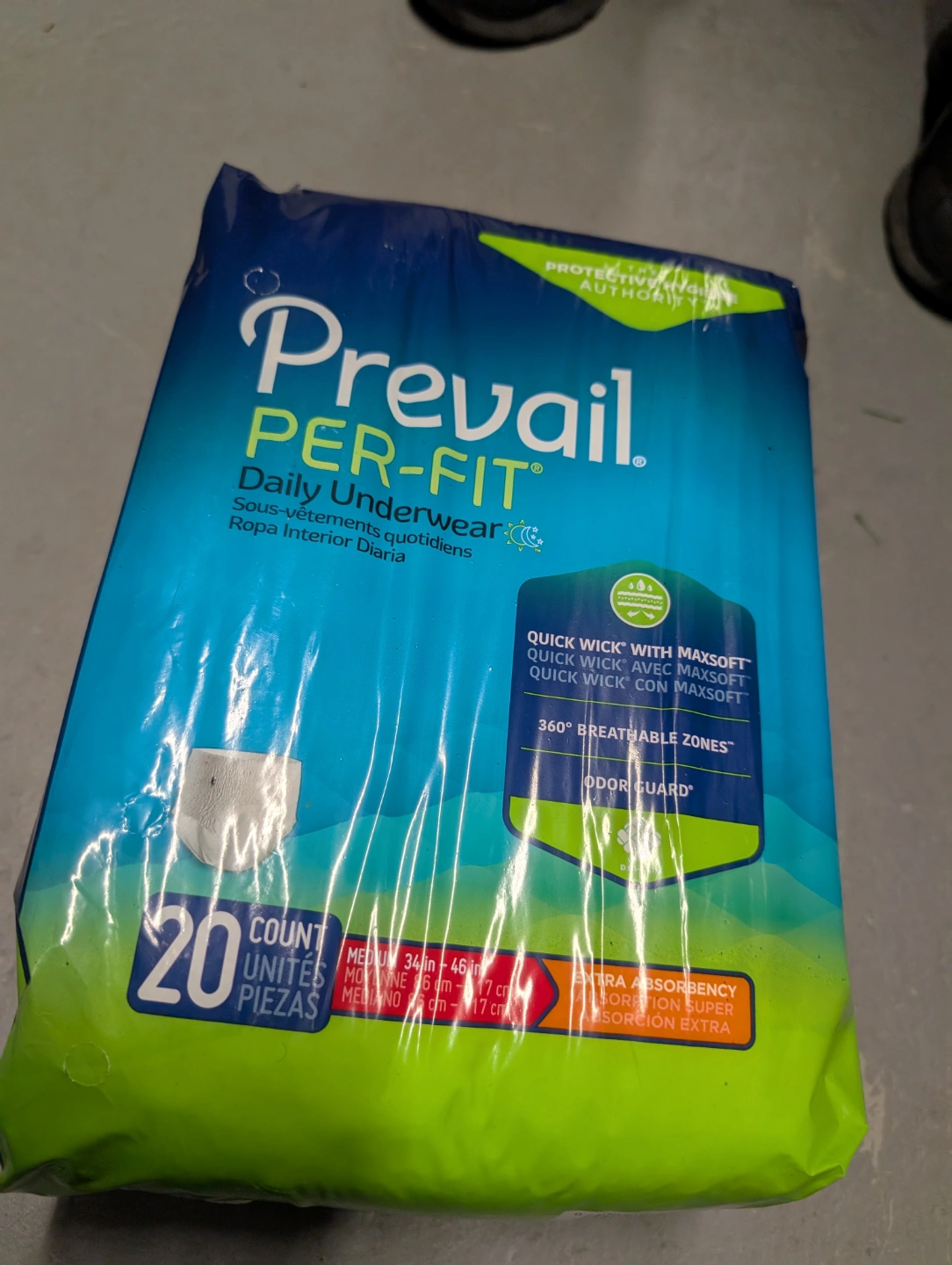 Prevail Per-Fit Daily Underwear. Medium size, 34-46 inch waist. extra absorbance