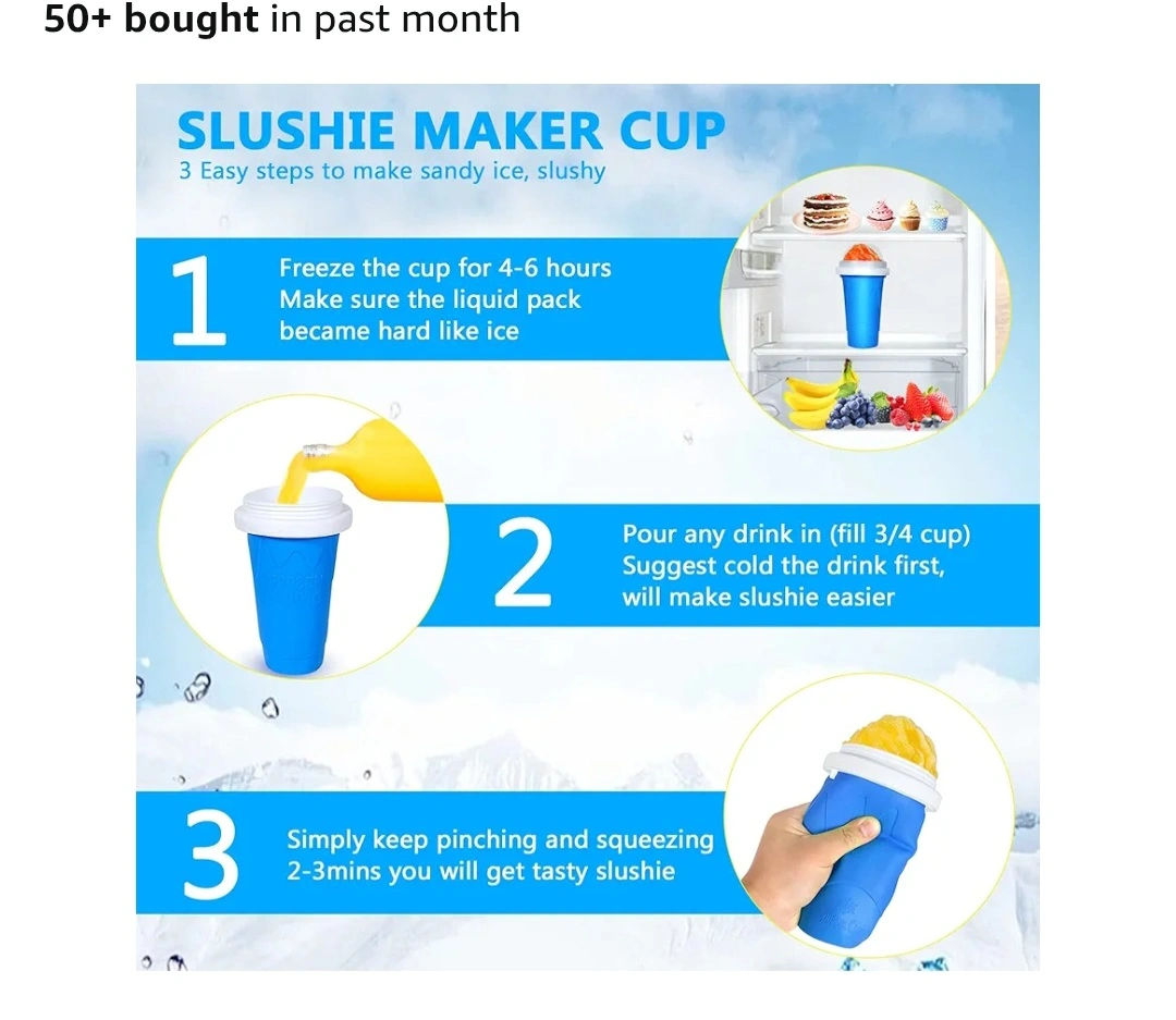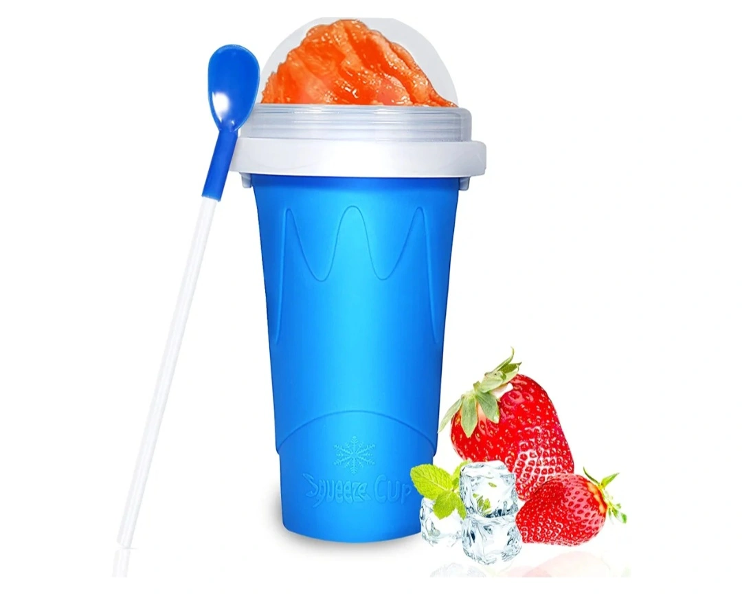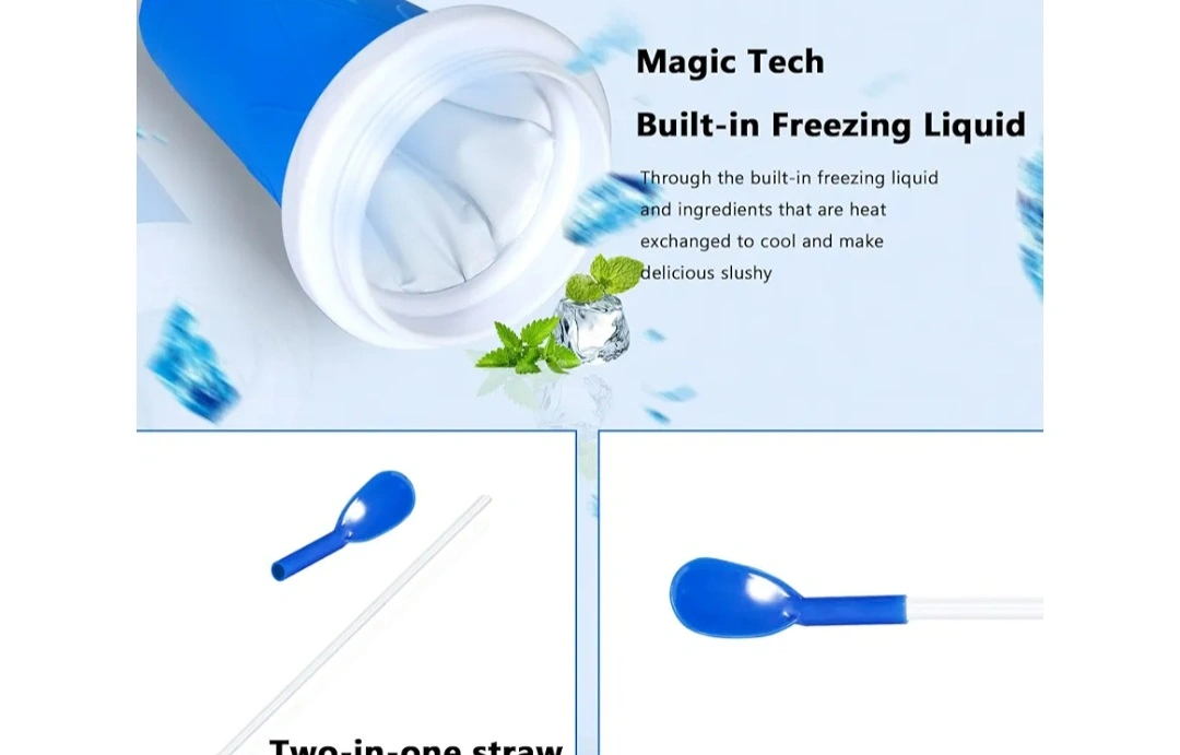 Fun, easy slushy maker. Freeze for 4-6 hours. Add your favourite drink. Squeeze and enjoy! Includes spoon and straw.