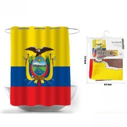 Shower curtain featuring the flag of Ecuador. Polyester fabric. Machine washable. Adds a patriotic touch to your bathroom. Includes twelve reinforced buttonholes.