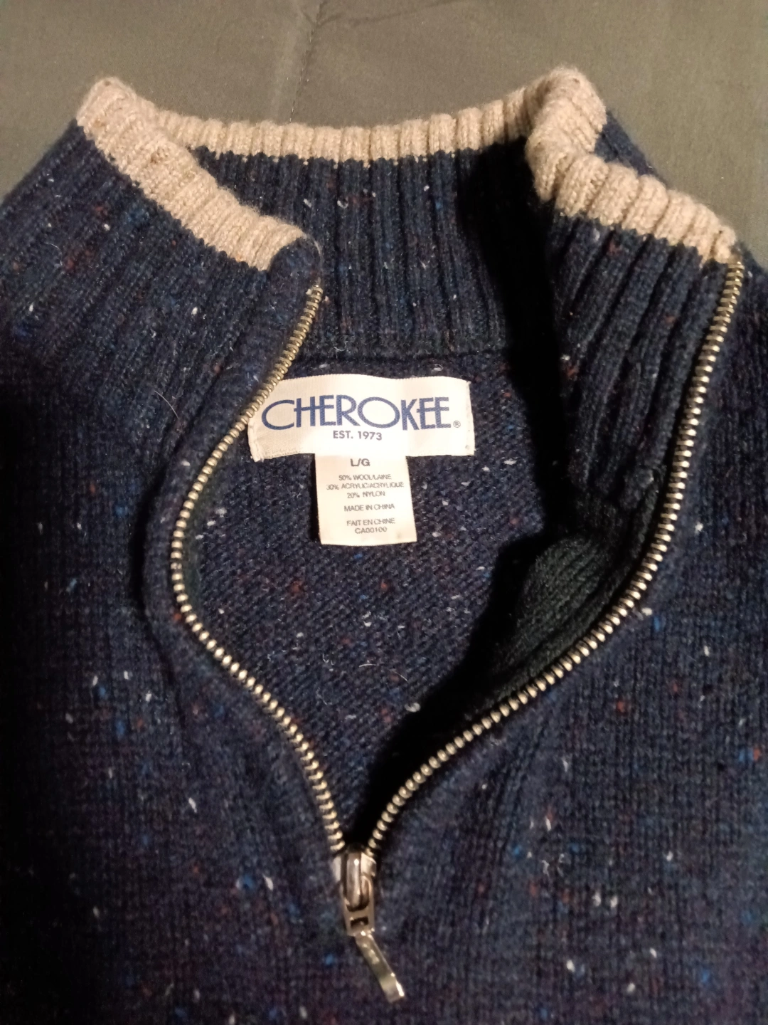 Cherokee Men's Size Large 1/4 Zip Sweater