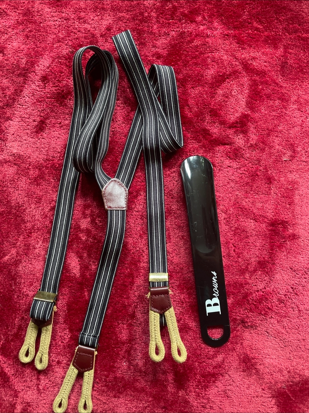 Buy & SellMen's suspenders and shoe hornMen's suspenders and shoe hornFreePair of striped suspenders with leather accents. Includes a Browns shoe horn. Good condition.BrandBrowns2 chats·2 favorites·86 viewsSELLERPatriciaForest Hill S26435 reviewsWHERE TO MEET310 Lonsdale rd Toronto