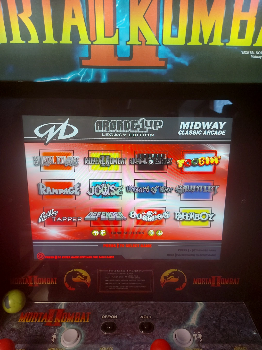 Arcade1Up Legacy Edition Mortal Kombat II cabinet. Features multiple classic Midway games.