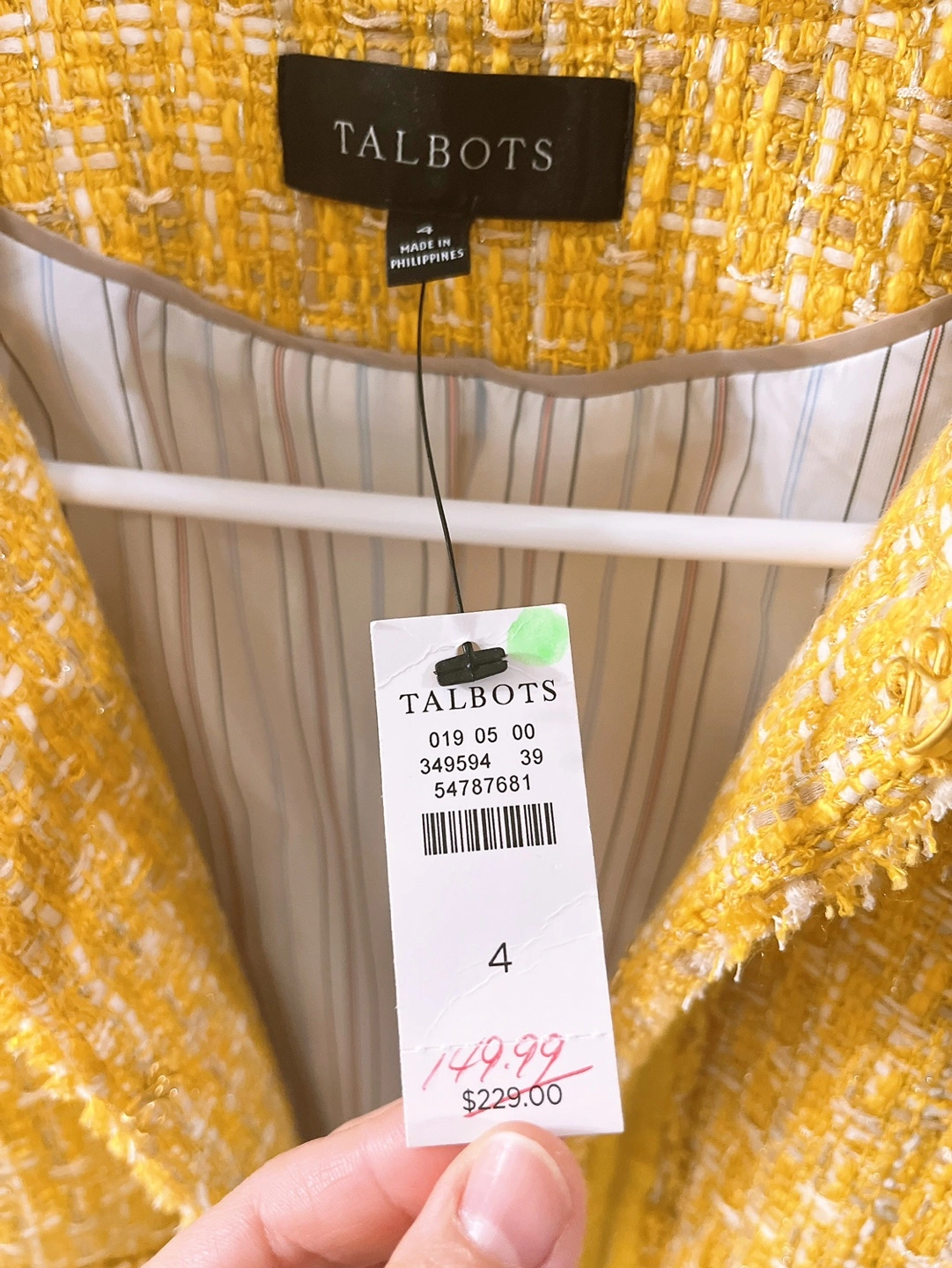 Buy & SellTalbots Yellow Tweed Jacket Size 4Talbots Yellow Tweed Jacket Size 4$15Beautiful yellow tweed jacket. Size 4. Frayed edges. Perfect for office outfit. Never worn, brand new with tag.ConditionNewSize4BrandTalbotsWHERE TO MEETYonge and FinchView MapSELLERverifiedEllieFinch21617 reviews2 chats·1 favorites·87 viewsSEND CHAT TO SELLERHi Ellie! I’m interested in your listing.Hi Ellie! I’m interested in your listing.Get the Karrot app to chatSign In to chat