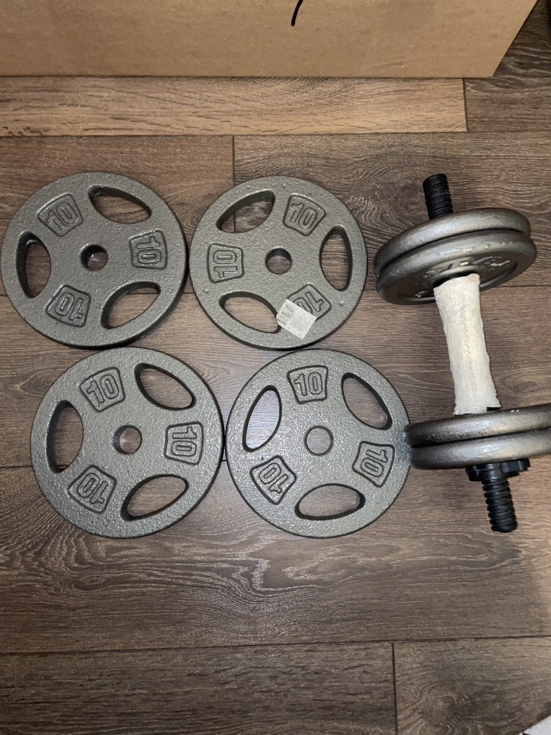 1 / 21 / 2Buy & SellDumbbell Weight SetDumbbell Weight Set$20Four 10lb weight plates and one dumbbell set with adjustable weight (currently has four 5lb weight on it). Great for home workouts.WHERE TO MEETCheck LocationView MapSELLERverifiedChiChurch and Wellesley1247 reviews3 chats·2 favorites·43 viewsSEND CHAT TO SELLERHi Chi! I’m interested in your listing.Hi Chi! I’m interested in your listing.Get the Karrot app to chatSign In to chat