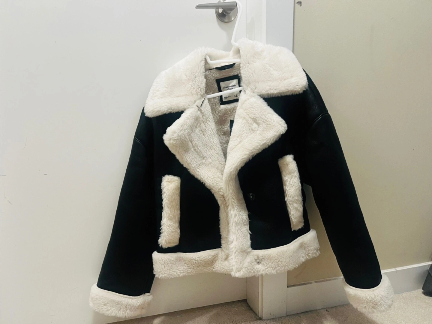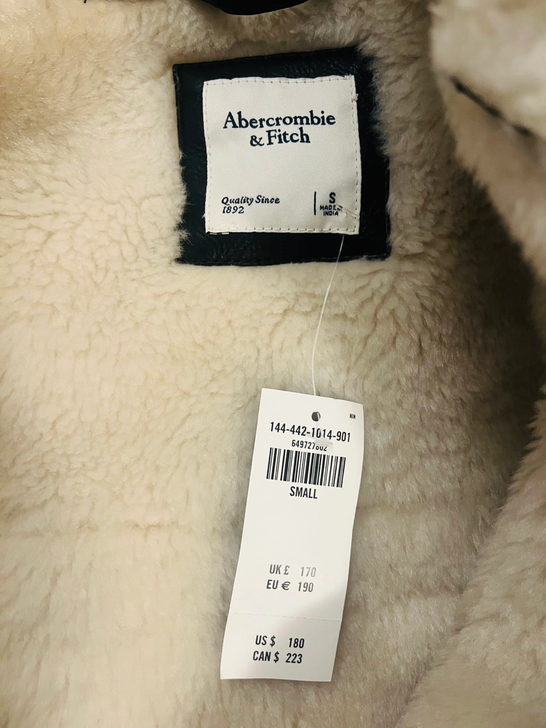 Brand new Black faux leather aviator jacket. Features cream coloured sherpa lining and trim. Size small. Selling because it doesn’t suit me.