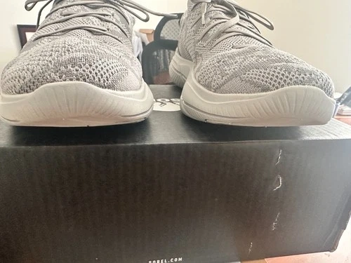 Brand new with box. A small line on the midsole is visible from manufacturing — this is a normal mold line found on all EVA foam soles and is not wear or damage. Shoes have never been worn. These SOREL lace shoes have a soft and breathable engineered knit top with a conventional lace-up fastening for a personalized fit. These shoes allow your feet to breathe freely when running or walking, keeping them dry and cool. Feel reduced weight on your feet to improve job performance with these high-performing casual sneakers. Comfort and fashion come together in stylish SOREL men's casual shoes. The soft collar relieves strain around the ankle, and the eco-friendly heel pull tab makes them a comfortable and sporty pair of casual sneakers for all-day wear, while the breathable textile lining keeps your feet dry and comfy. These breathable shoes for men are made of chemical-free textiles and are built to last. SOREL lace shoes for men are built of modern color palettes that are quite attractive and can be worn everywhere, as well as being durable. These walking shoes for men include a molded grippy EVA outsole for stability and traction, allowing you to go places you've never been before. These rubber sole men's shoes are extremely durable, and excellent for use on slick terrain. On wet days, you can now run with confidence. The extra-sturdy sole provides ankle support for men and alleviates the strain of being on your feet all day, while TPU overlays in the toe tip boost the stability of these men's fashion sneakers. Men's lace shoes that are both comfortable and athletic are ideal for all-day wear. This design demonstrates that you travel your own road, your own way! These sneakers for men have removable insoles for extra security and added comfort. It is a slip-on men's shoe with pull loop at the heel for easy and convenient wear. This lightweight footwear for men is appropriate for gym workouts, walking, jogging, biking, hiking, traveling, or any other event. These casual sneakers give superior comfort as well as an appealing appearance. The appropriate pair of SOREL sneakers will lead you to new places. It is soft and comfy, allowing for natural foot mobility. The goal of minimalist walking shoes for men is to provide feet flexibility to move and operate as if walking barefoot. Wearing these SOREL men’s sneakers will show your pals that the world is at your feet.
