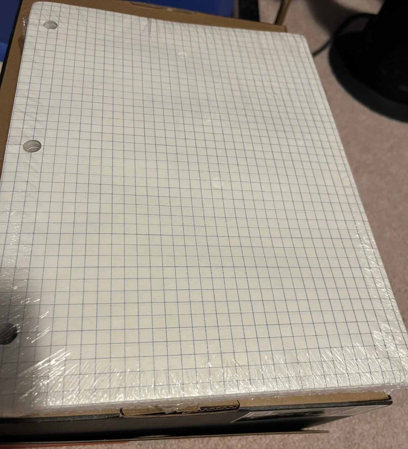 1000+Package of graph paper - 600 standard sheets Three-hole punched. Great for school or office use. Sealed in original packaging. Selling online for over $12 - see attached photo for price comparison No smoking and no pet household