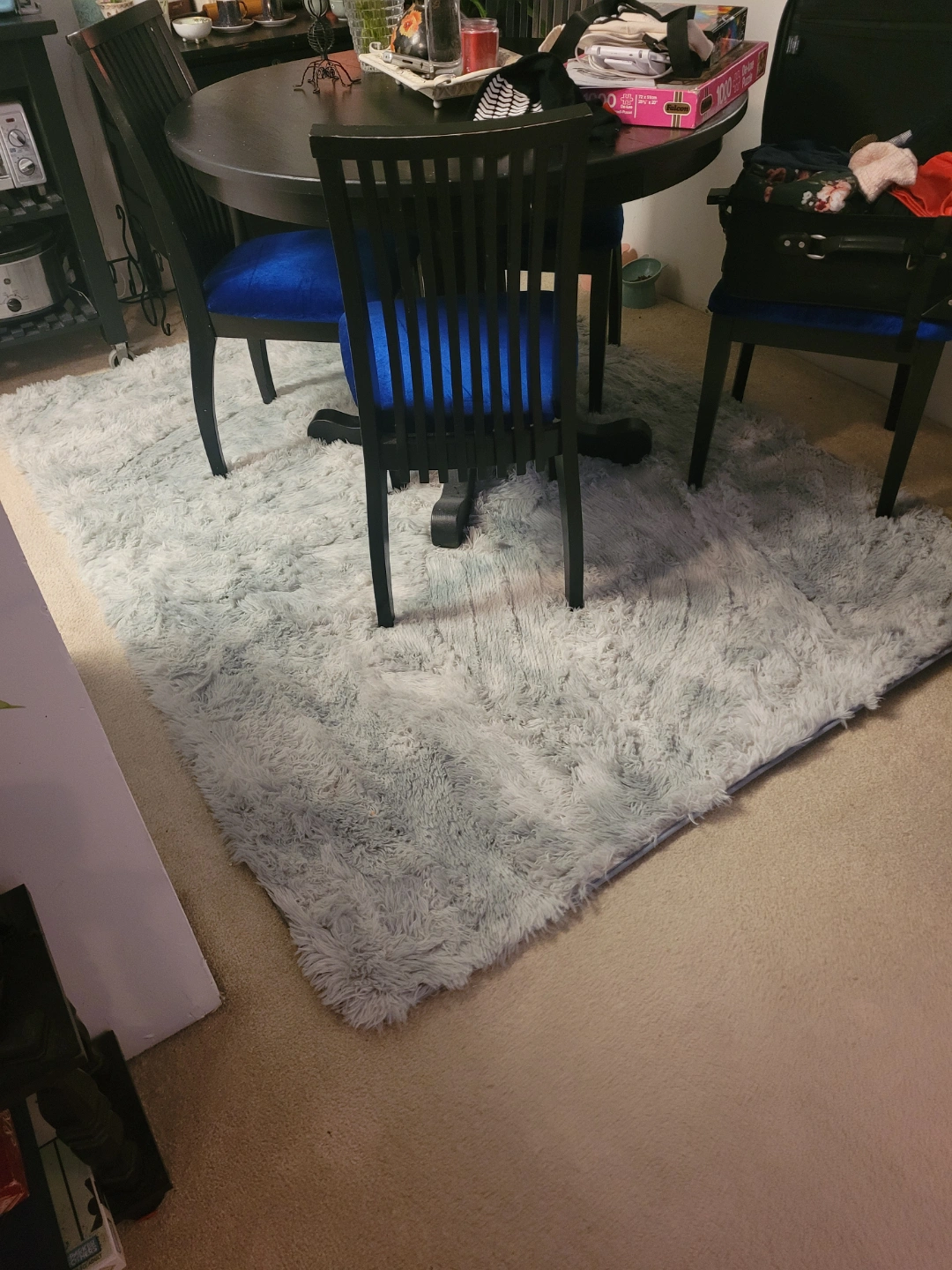 Soft, plush grey rug. Perfect for adding comfort and style to any room. Non-slip backing. Machine washable. Great condition, some minor discoloration on the bottom.