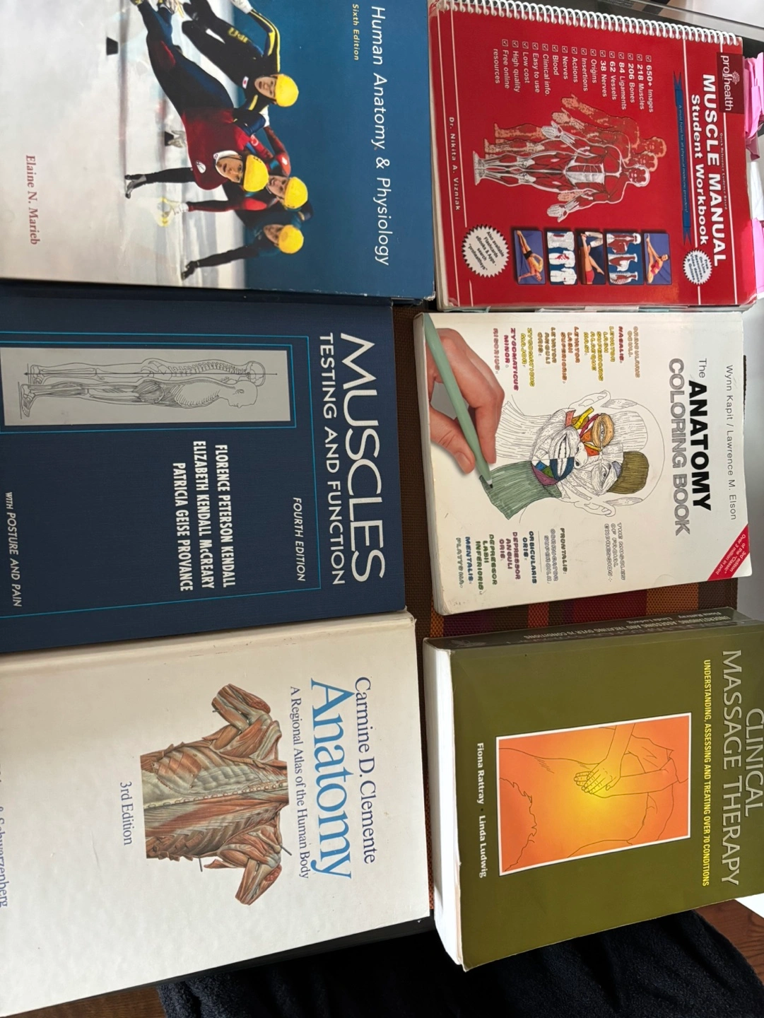 Books on anatomy, including the muscles and movement of the body. Testing and learn by colouring in Anatomy! Pristine condition. Muscle manual and clinical therapy Green a look so testing is sold.