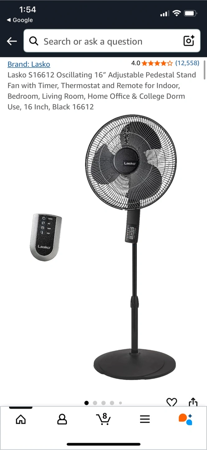 Lasko S16612 Oscillating 16″ Adjustable Pedestal Stand Fan with Timer, Thermostat and Remote for Indoor, Bedroom, Living Room, Home Office & College Dorm Use, 16 Inch, Black 16612. Featuring a round base and adjustable height. A perfect item for your home to help circulate air