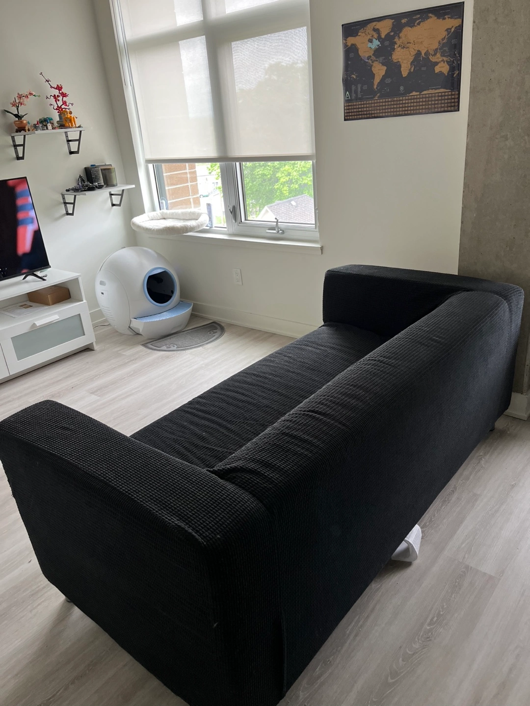 Comfy and modern vansbro black sofa, originally bought for $485 + tax. Only used for 9mths selling because I’m moving. Easy to change the colour/fabric with a new cover from Ikea