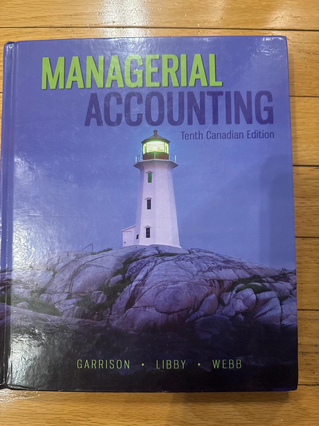 Textbook titled Managerial Accounting. Tenth Canadian edition. A great tool for any accounting student hoping to expand their knowledge in the field. Originally purchased at Queens University