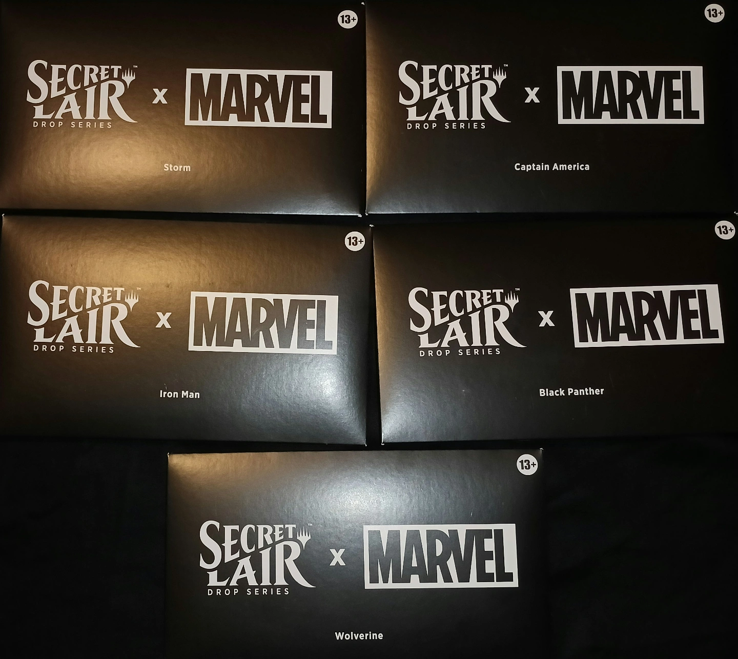157NON FOIL! Storm 5 Cards Captain America 5 Cards Iron Man 6 Cards Black Panther 6 Cards Wolverine 5 Cards Never been opened. Only selling the bundle! Not individual! E-transfer only! I thought these would help me get into Magic: The Gathering... they did not.