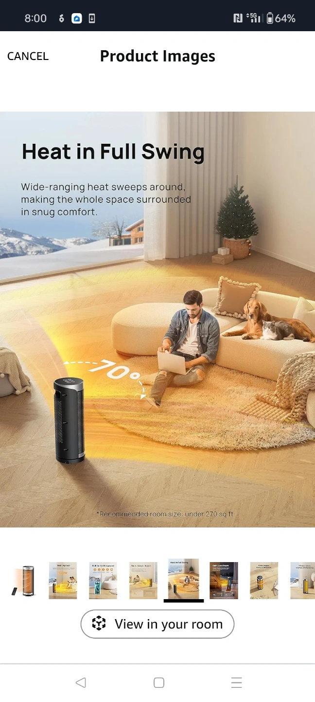 Dreo Space Heater for Indoor Use, 16 inch Portable Electric Heater with Remote for Bedroom, 1500W PTC Ceramic Fast Heating with Thermostat, Overheating & Tip-Over Protection, 70°Oscillating,