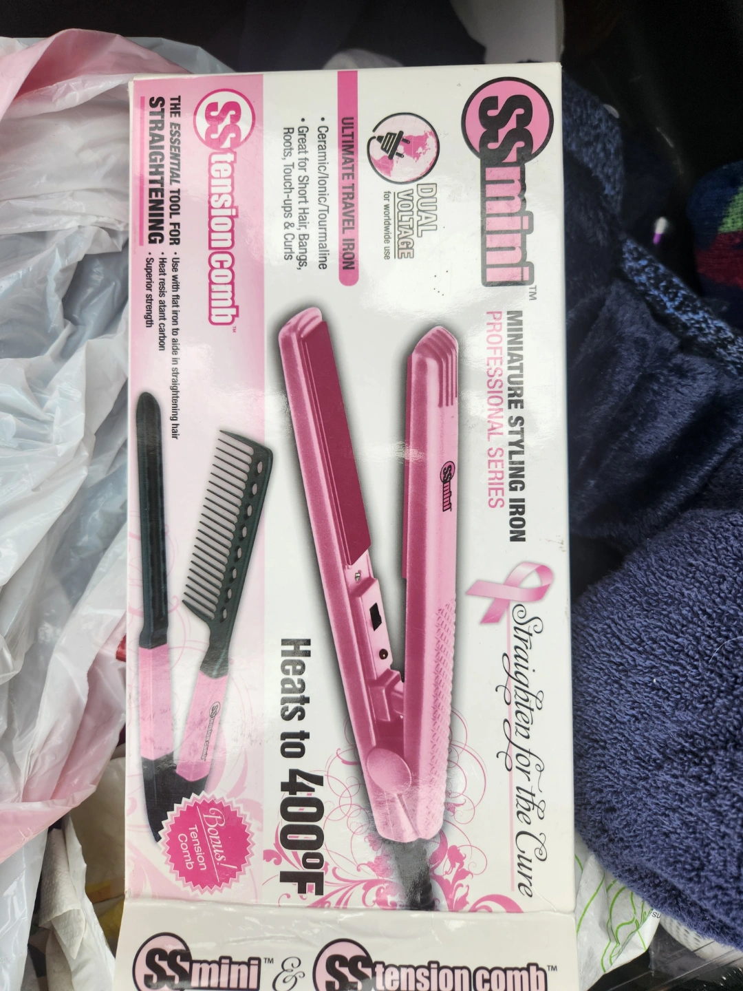 Miniature styling iron. Ceramic/ionic tourmaline. Great for short hair, bangs, roots, touch-ups and curls. Can be used in the comfort of your home to style your hair.