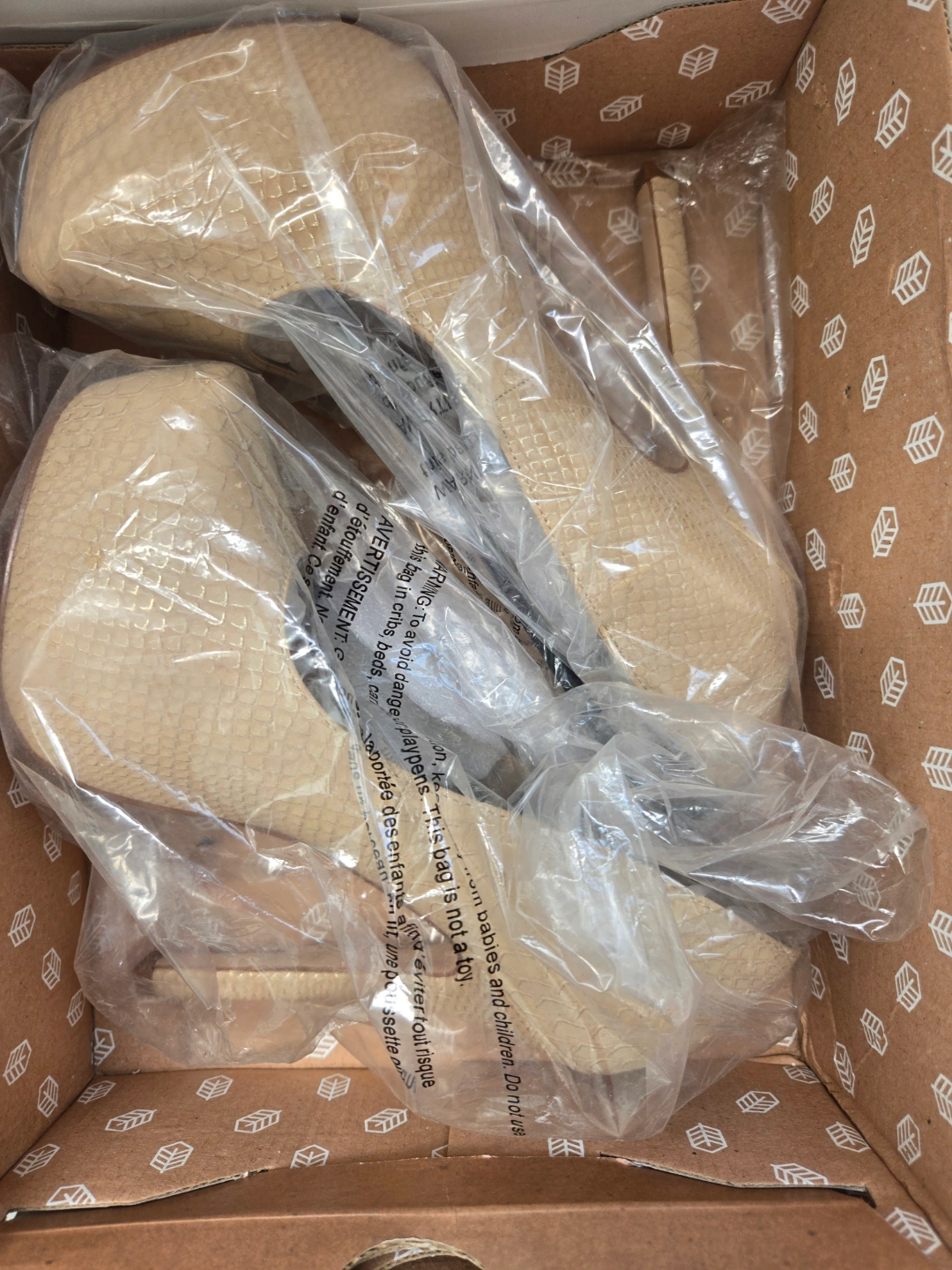 230Assorted heels in different colours and styles. Some shoes have open toes, or a lace-up design. These heels would add a touch of elegance to any outfit.