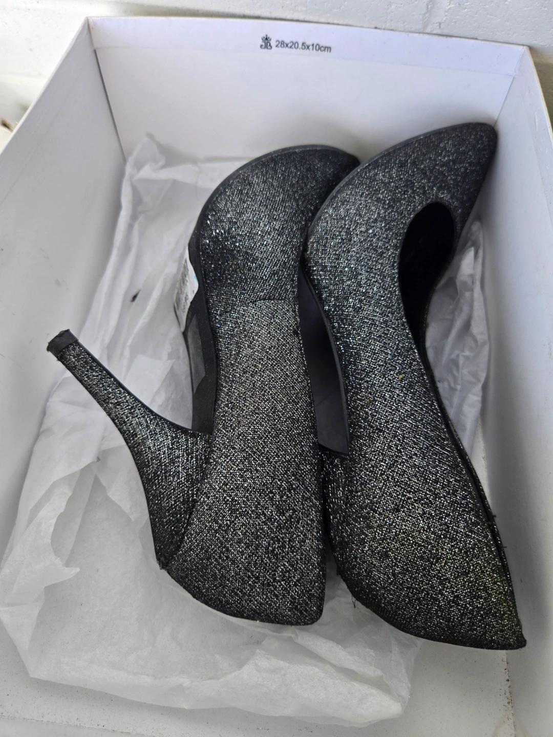 230Rose gold heels with multiple straps. A heel with a buckle closure. They would be a lovely addition to your wardrobe, providing a touch of elegance to any outfit.