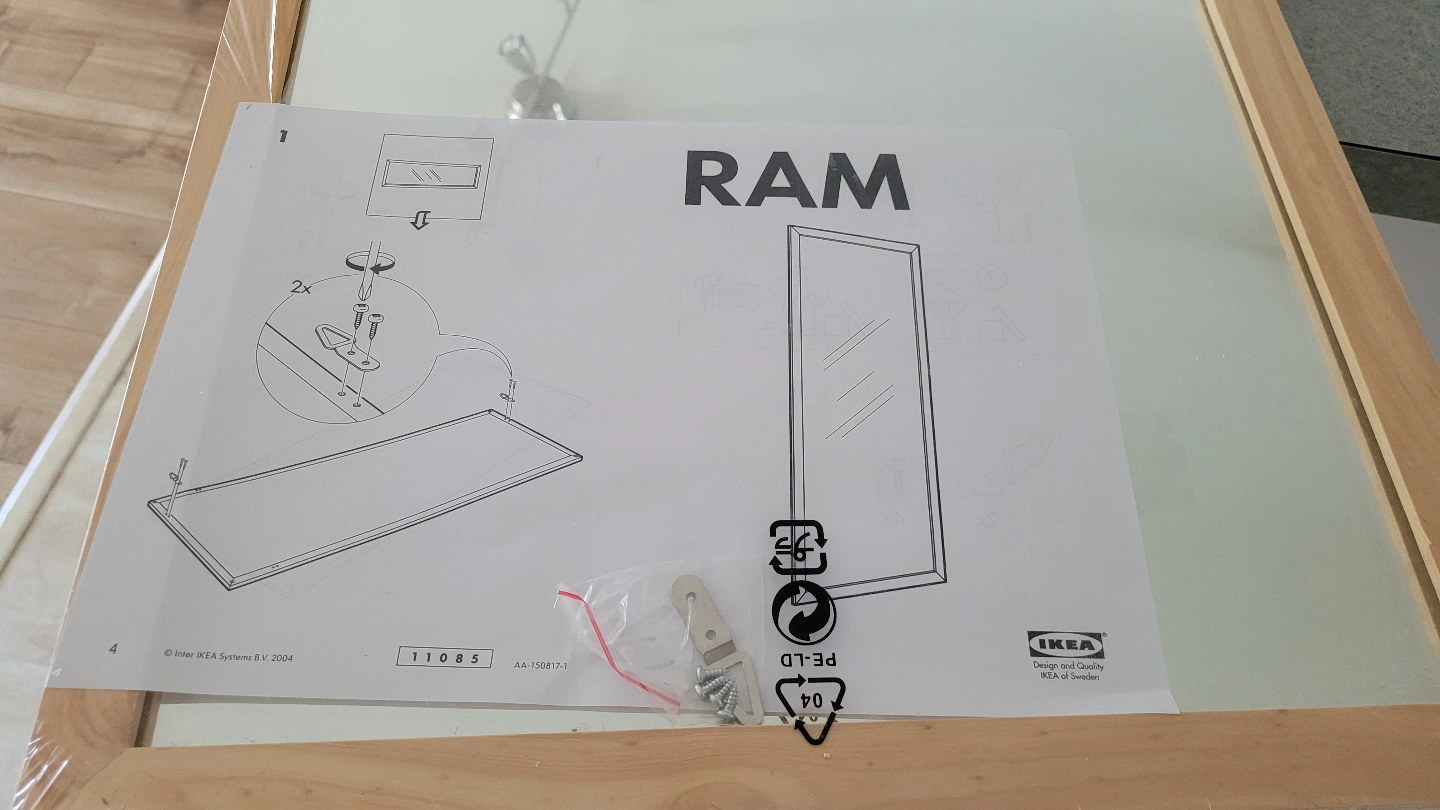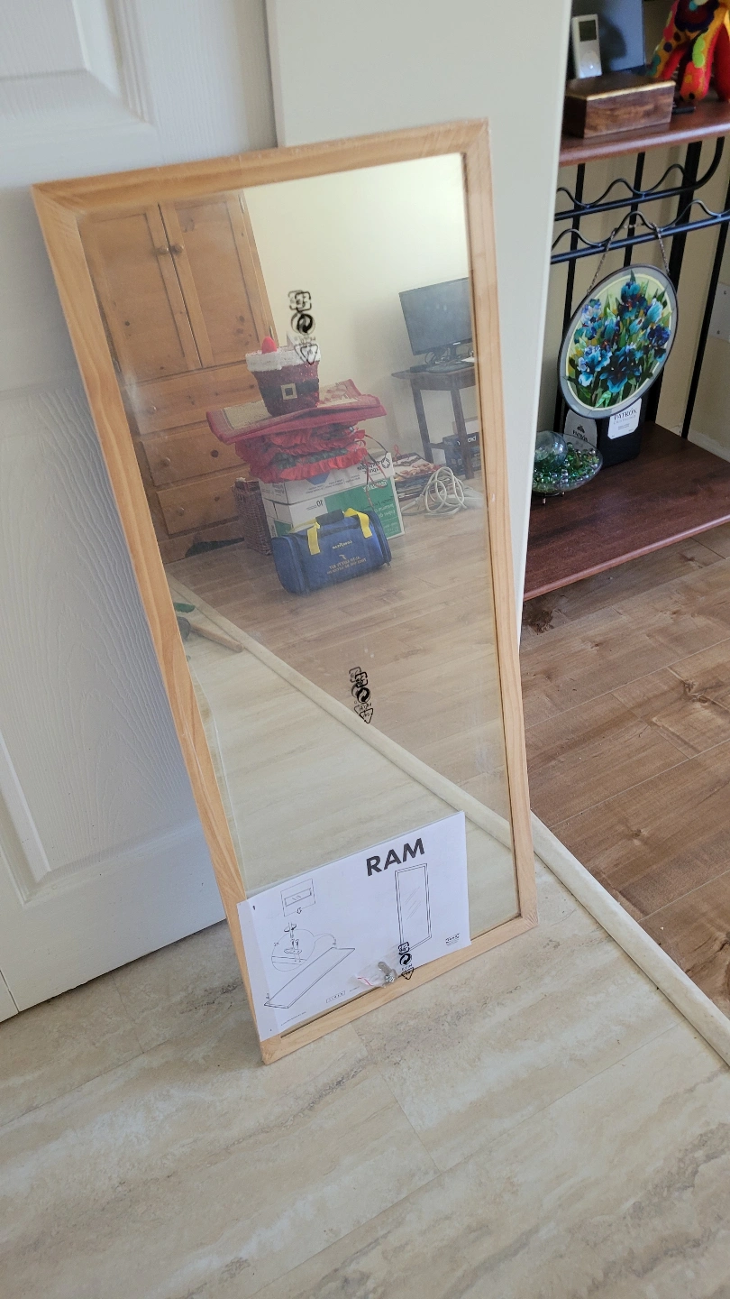 Wooden framed mirror. Rectangular shape. With original packaging. A mirror like this can create a soothing ambiance in your home.