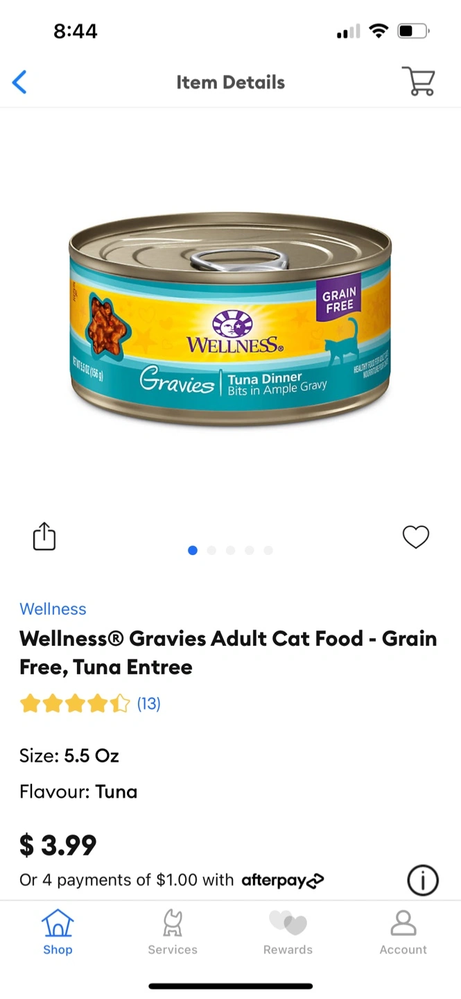Buy & SellWellness wet cat food (22 cans)Wellness wet cat food (22 cans)$4022 cans (5.5oz each) of wellness tuna dinner in gravy cat food. Best before Sep 3, 2025 $2 each or $40 for allConditionNewWHERE TO MEETCheck LocationView MapSELLERverifiedJessicaBay Street Corridor14610 reviews1 chats·1 favorites·37 viewsSEND CHAT TO SELLERHi Jessica! I’m interested in your listing.Hi Jessica! I’m interested in your listing.Get the Karrot app to chatSign In to chat