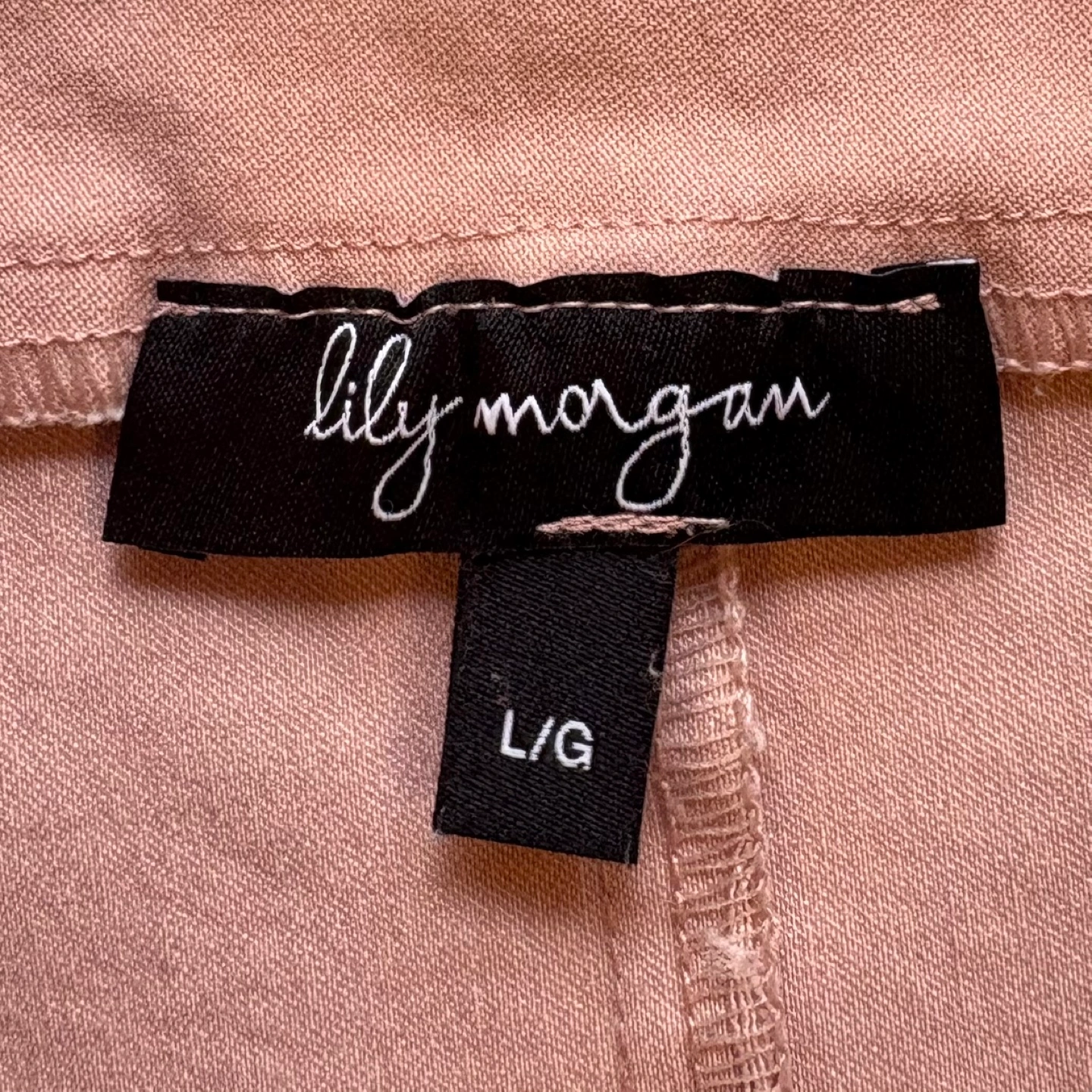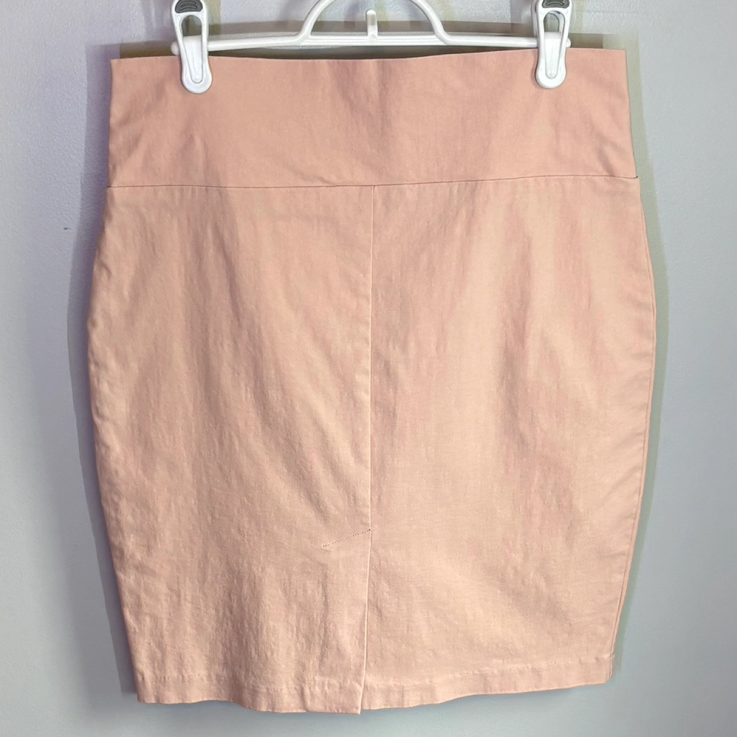 This is a Lily Morgan unlined stretchy pencil skirt, perfect for adding a touch of class to your wardrobe! It features a comfortable, stretchy material and a walking slit for ease of movement. Size L.