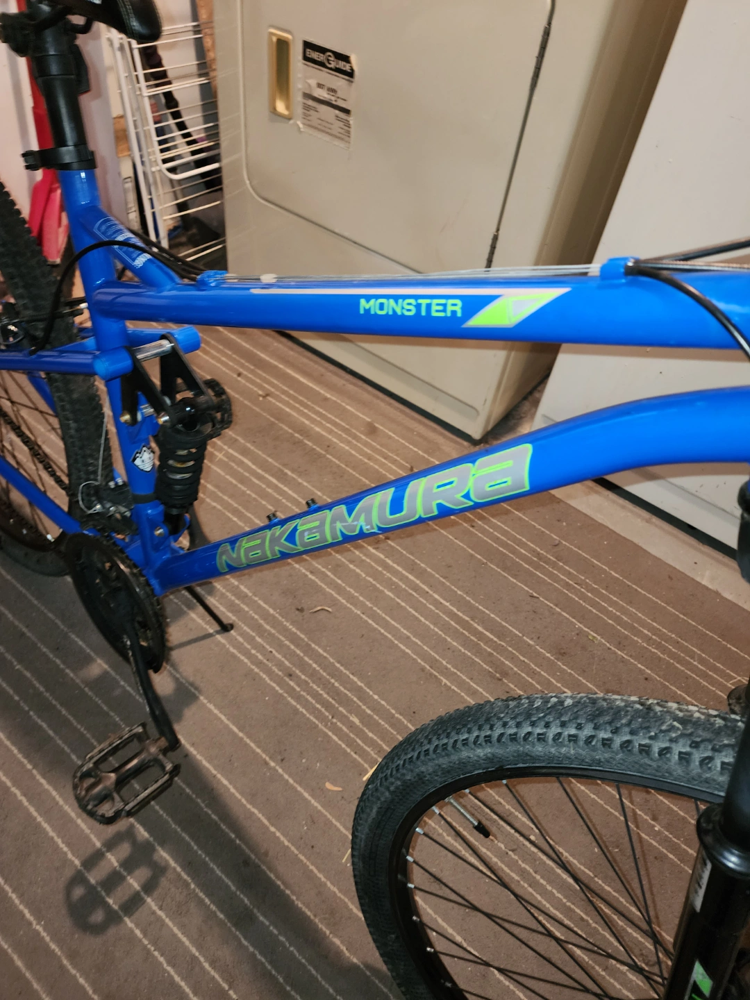 I'm selling my Nakamura monster dual suspension mountain bike. Itd a only a couple years old, It's got 27.5 x 2.0 tires and it's a 21 speed (3x7). Its good for a rider up to 5'10. Tuned up ready to go asking 225 obo