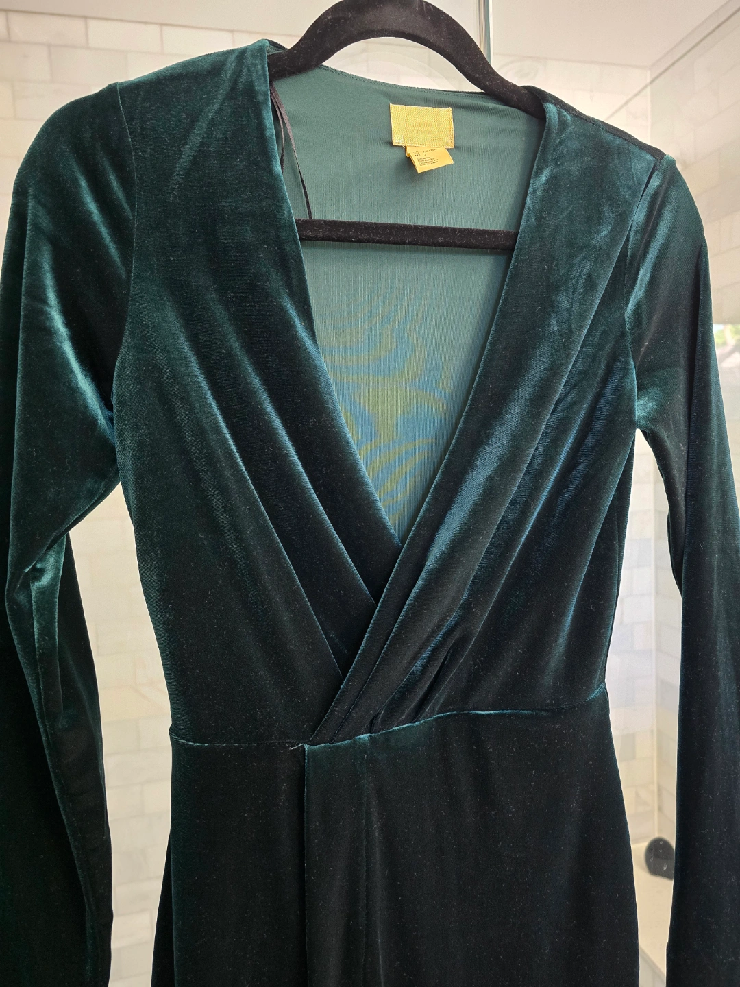 H&M Gold Label Green V-Neck Long Sleeve Velvet Cocktail Dress
