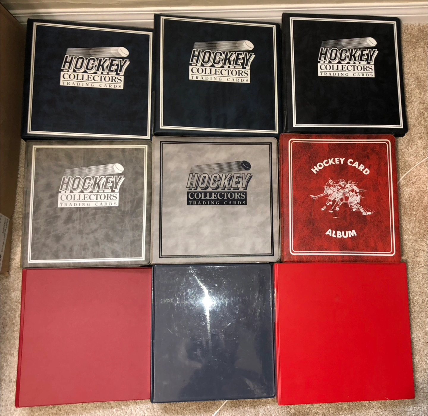 Assortment of binders for collecting and displaying your hockey cards. Some binders have the Hockey Collectors logo. Organizing your collection will be very satisfying.