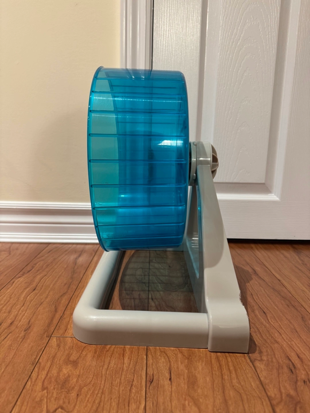 Selling this 12" Petsmart hamster wheel. It is very quiet, doesn't squeak and still works like new. Both my hamsters absolutely loved it and ran on it all night long. The base measures 36cmx22cm. The height of the wheel with base is 35 cm. Original retail price is $37.99. Also selling other hamster supplies on my profile.