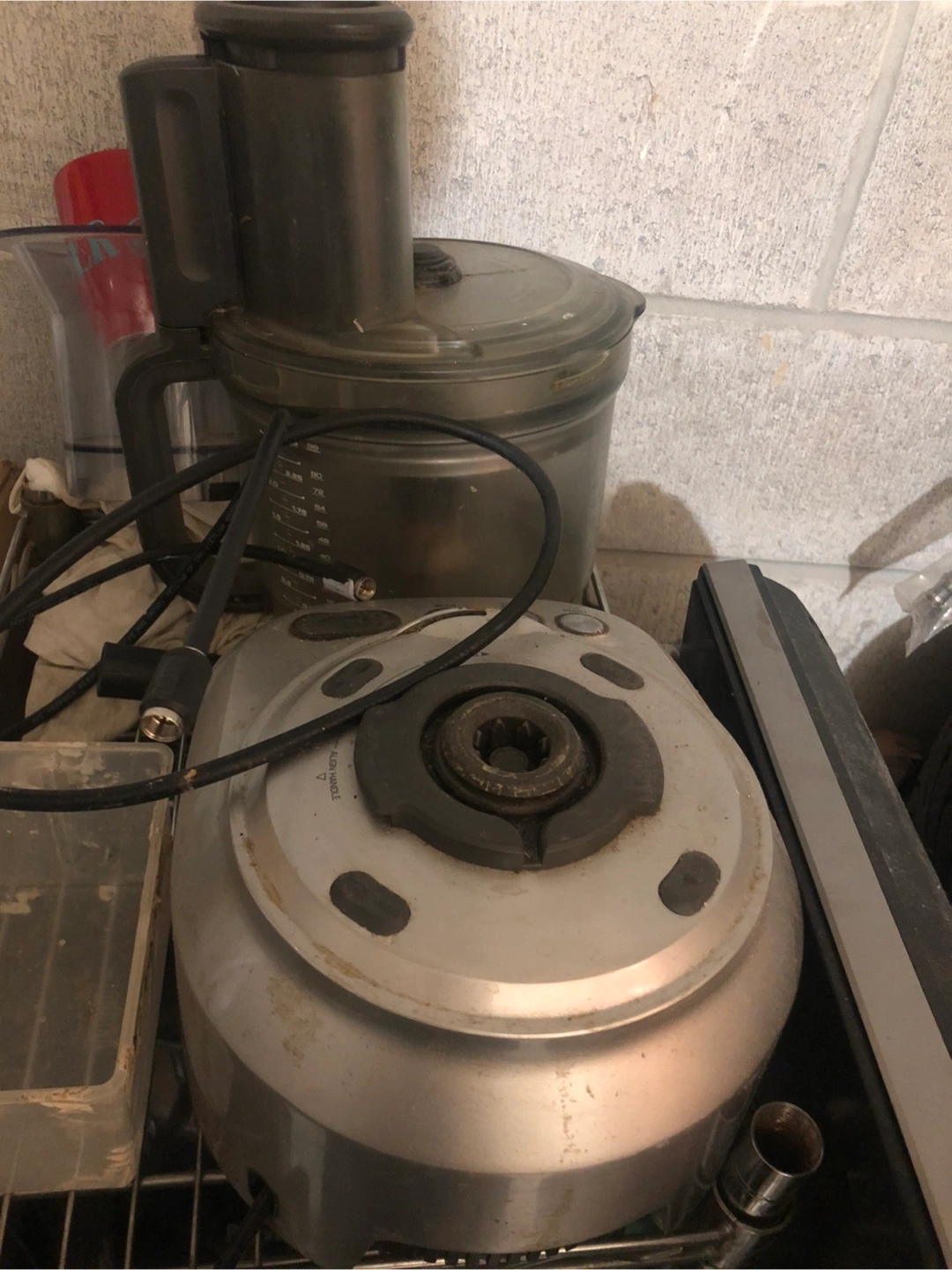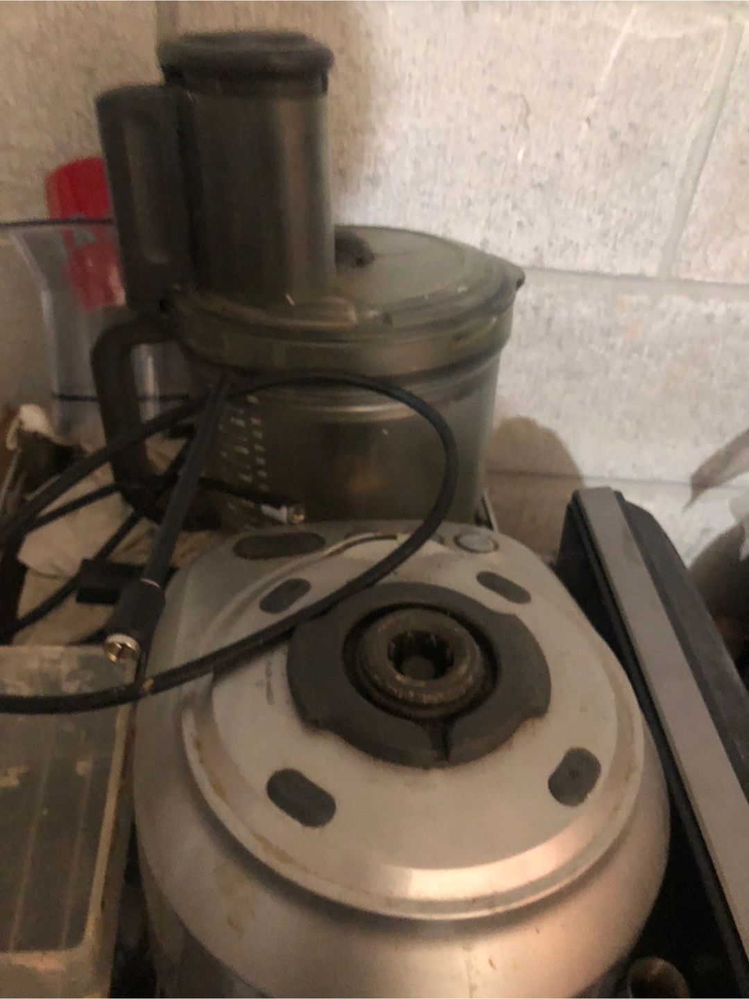 78A food processor. Features a large jug on top. The base has a silver finish. Perfect for preparing ingredients for any meal in a calm manner.working as is