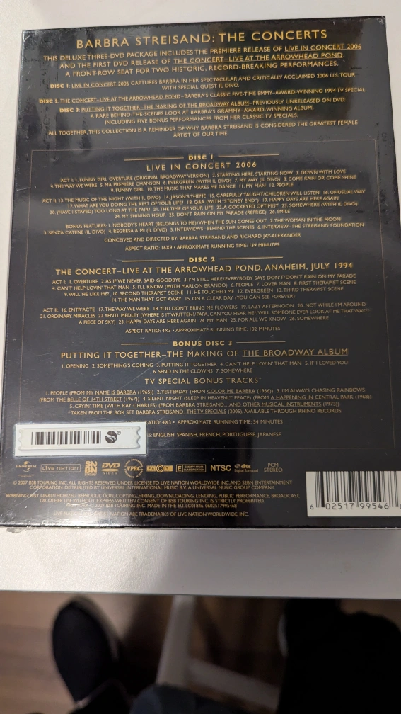 Three-DVD collection featuring Barbra Streisand concerts. Includes 2006 concert at the Arrowhead Pond and bonus footage. Features classics and hits. Special guests.