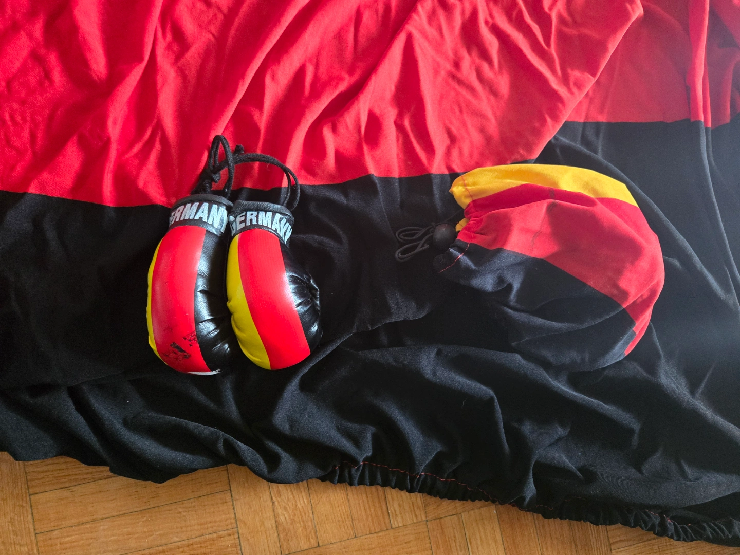 230A large flag with black, red, and yellow colours. Pair of small boxing gloves. A pouch with the same colours. Perfect to take home and enjoy. pick in north york