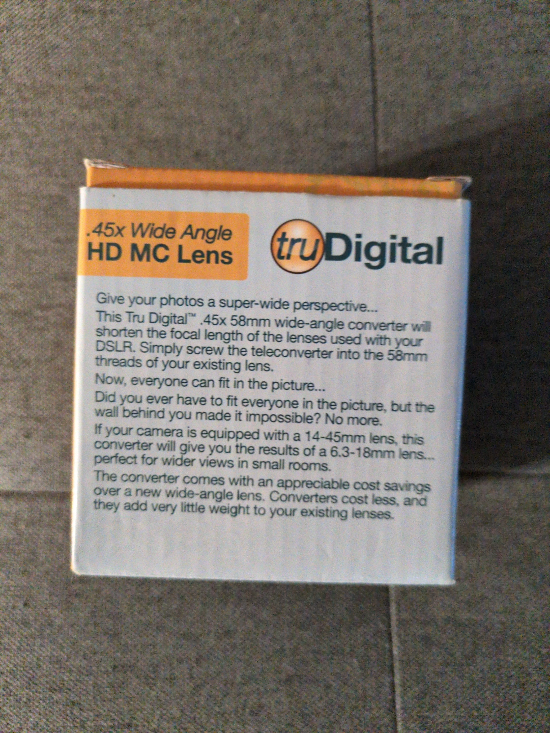 A new wide angle lens. Comes with a pouch and lens cap. Perfect for when you want to take photos with a wider field of view, and take your mind off things.