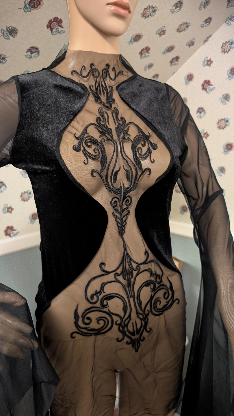 Unique Embroidered Halibuy Dress with see-through design down the front.