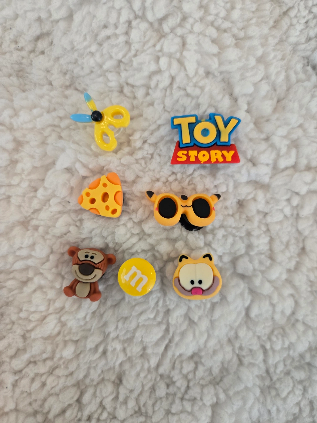The assortment includes various charms. Includes a Toy Story logo, cheese, and several cartoon characters. Consider adding these charms to your shoes for a touch of personality and to unwind after a long day.
