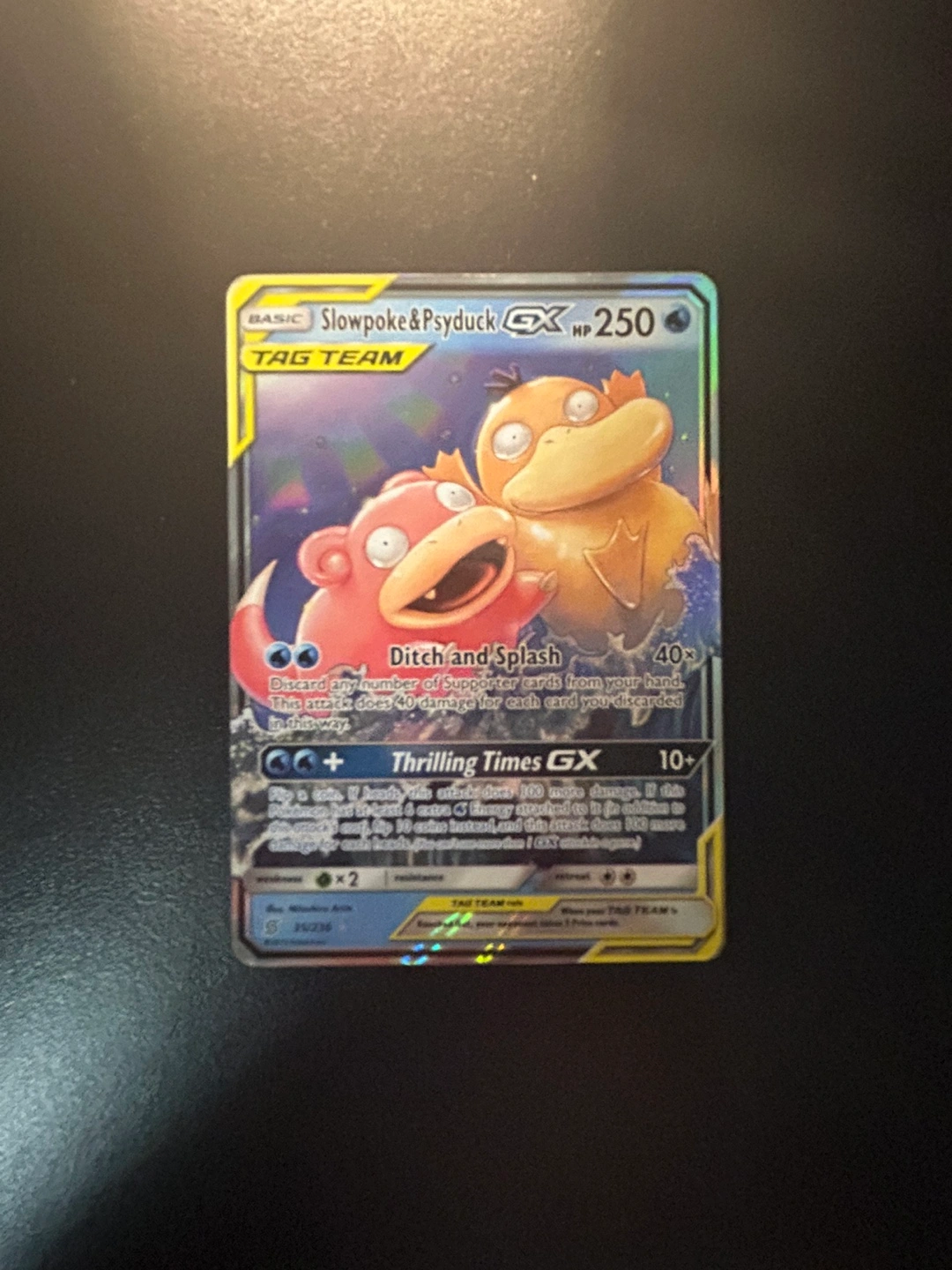 Showcasing Slowpoke and Psyduck. Features a holographic design. Ideal for anyone seeking to add to their Pokémon card collection, which makes for a fun experience. OBO