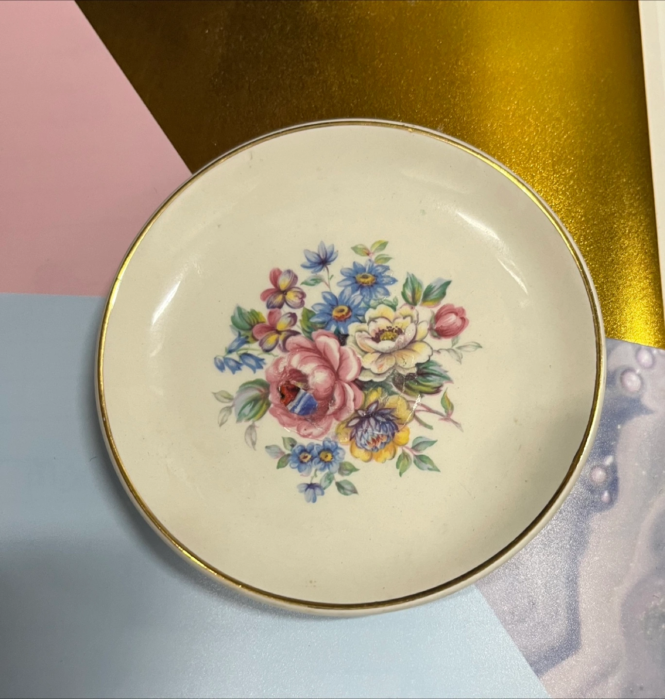 Lord Nelson 4” Pottery Trinket Dish Decorated with a floral design. Rim features a gold trim. A great place to store your treasured jewellery.