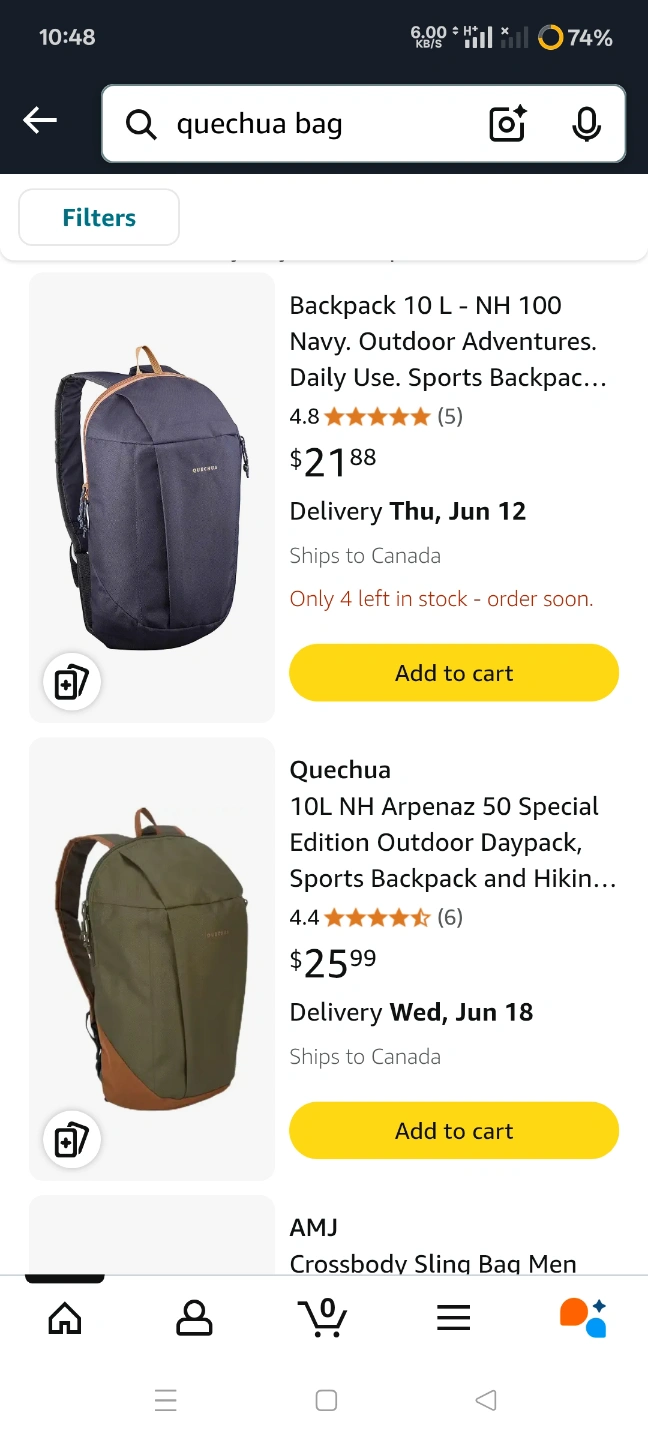 Backpack with adjustable straps. Features a top handle, and a front zipper. A great way to organize and carry your daily essentials.