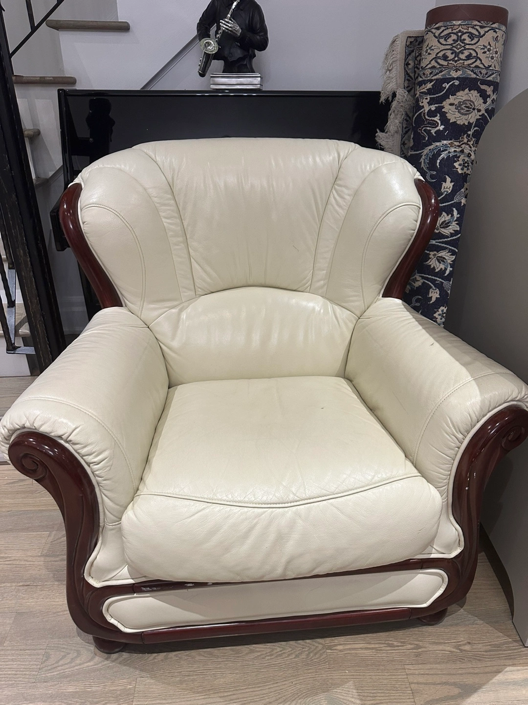 Buy & SellCream Leather ArmchairCream Leather Armchair$100Cream-coloured armchair. Features dark wooden accents. Wide seat and curved armrests. A comfy chair is perfect for unwinding after a long day.ConditionLike newWHERE TO MEET331 Connaught AveView MapSELLERverifiedMojiThornhill S770 reviews0 chats·1 favorites·13 views