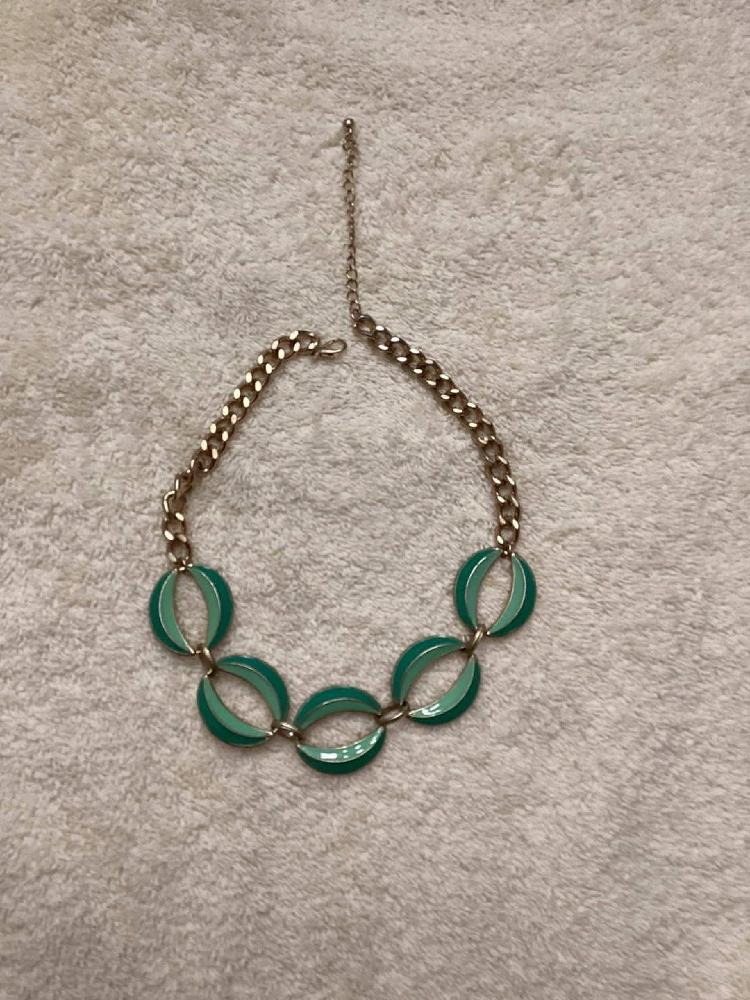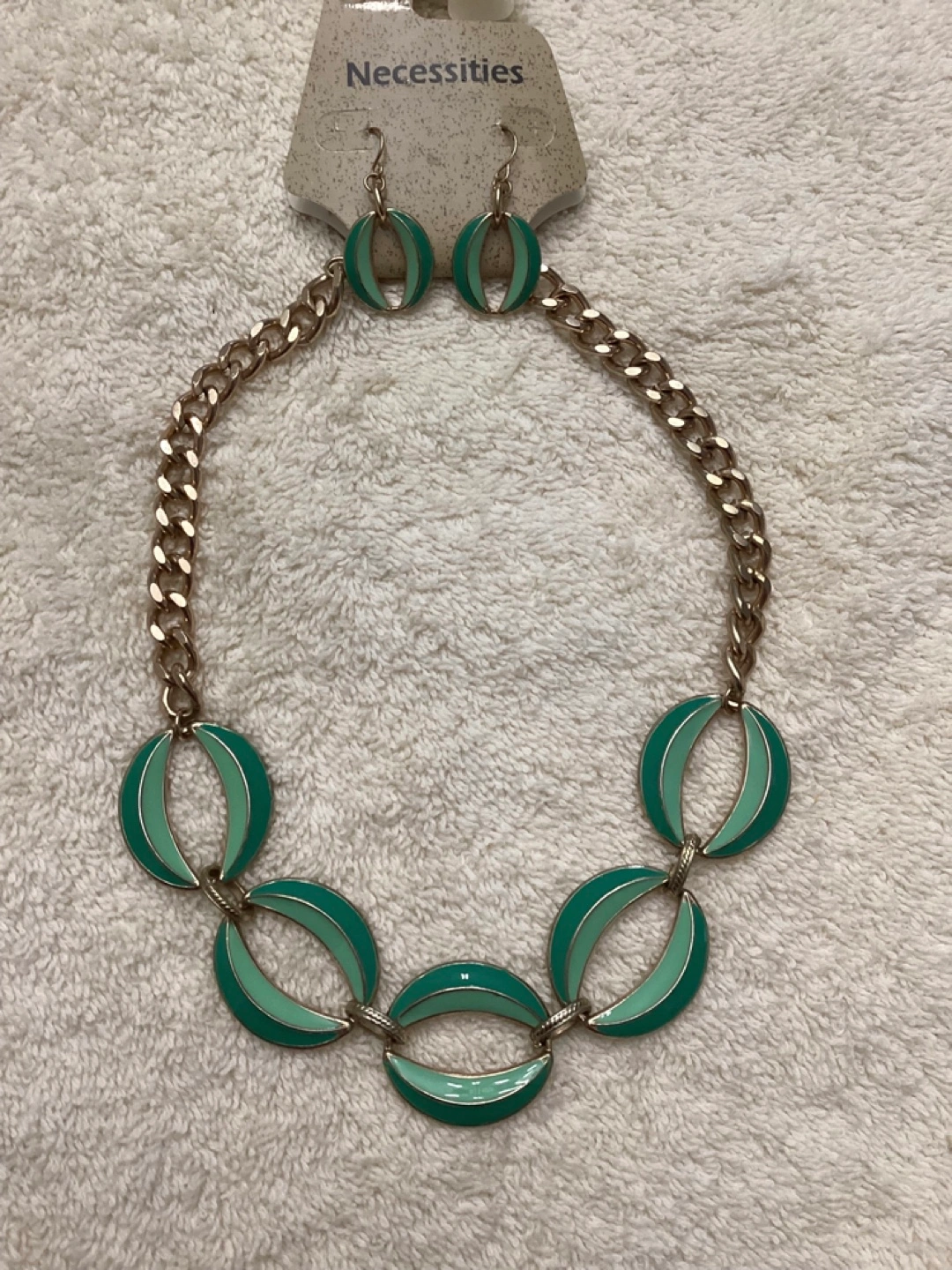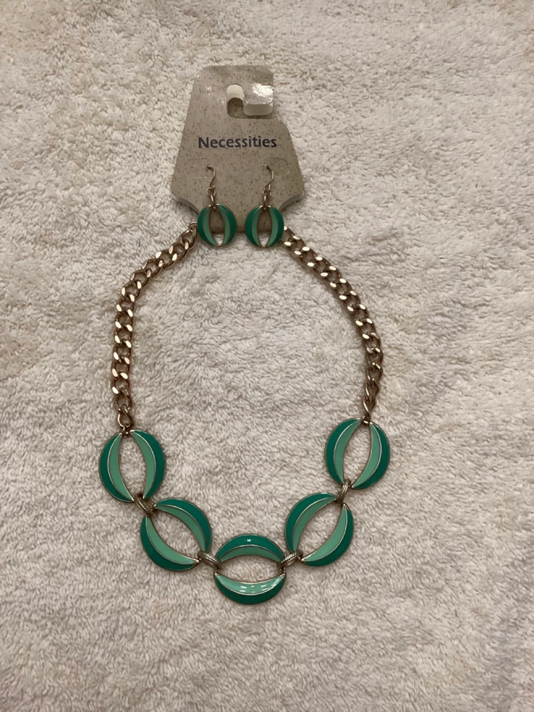 Costume Statement Necklace/Earrings Set, some wear on chain at back which is not visible when wearing, see last pic, purchased from accessories store called “Necessities” in downtown Toronto, approximate length 19 1/2” including extender.