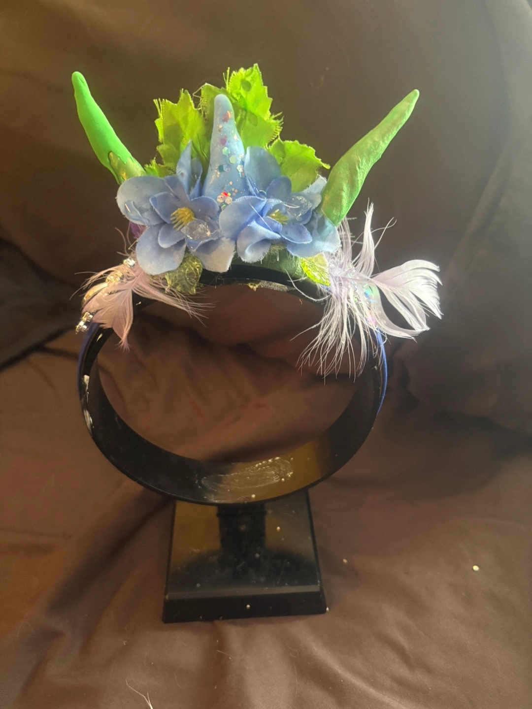 Decorative headbands with elaborate designs. Various colours and styles. Adorned with flowers, feathers, crystals and other embellishments. Perfect for a whimsical day or a special event, these headbands could be lovely additions to your wardrobe.