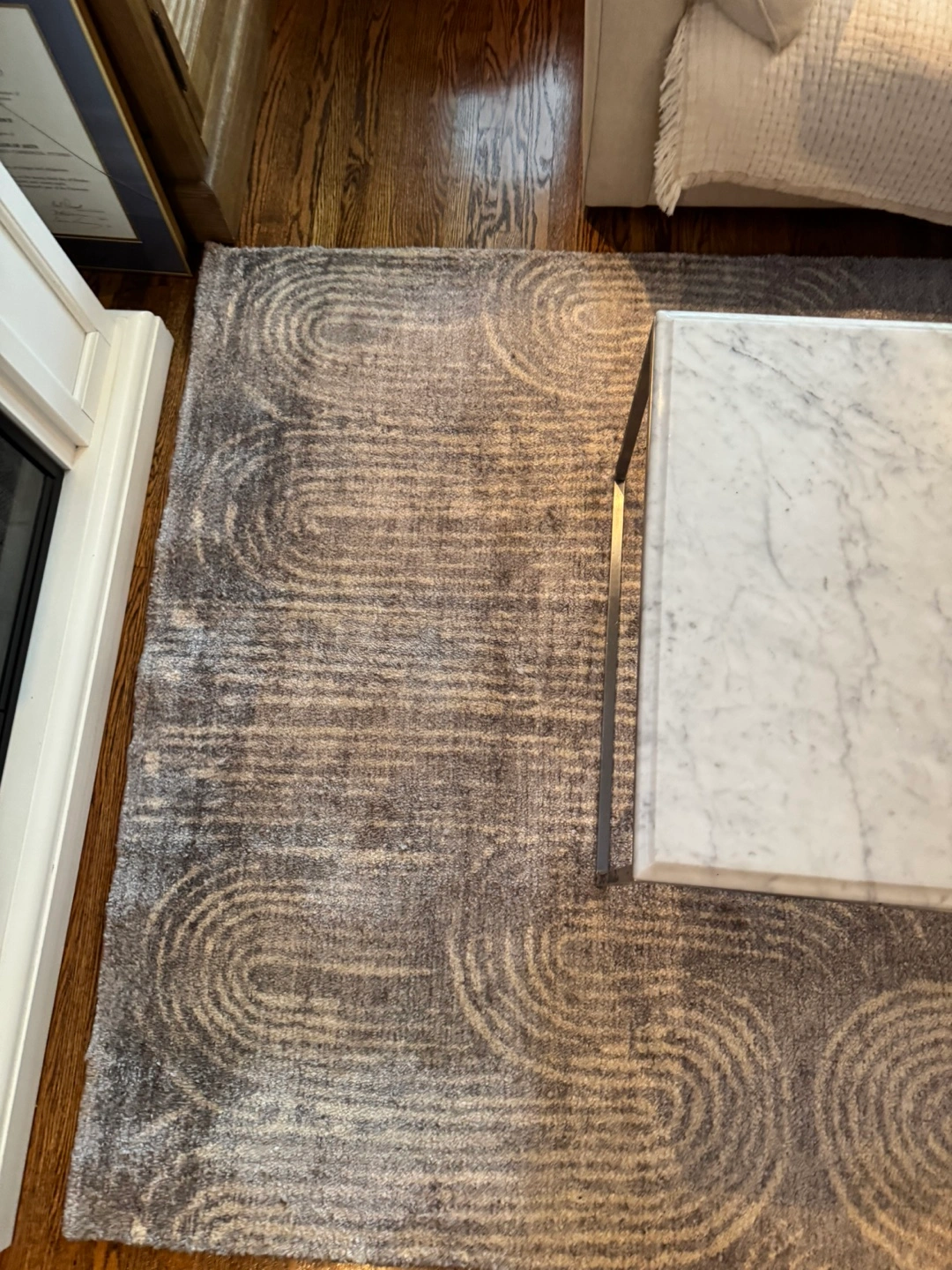 Gorgeous, modern and elegant CB2 area rug. Was just professionally cleaned May 28th 2025. Has a slight colour discolouration throughout. Selling at a price that’s reflective. Other than that it’s in perfect condition. Have posted photos. Retails for over $800 plus tax