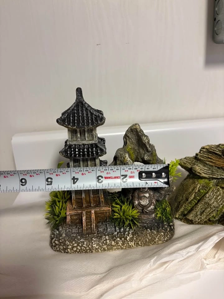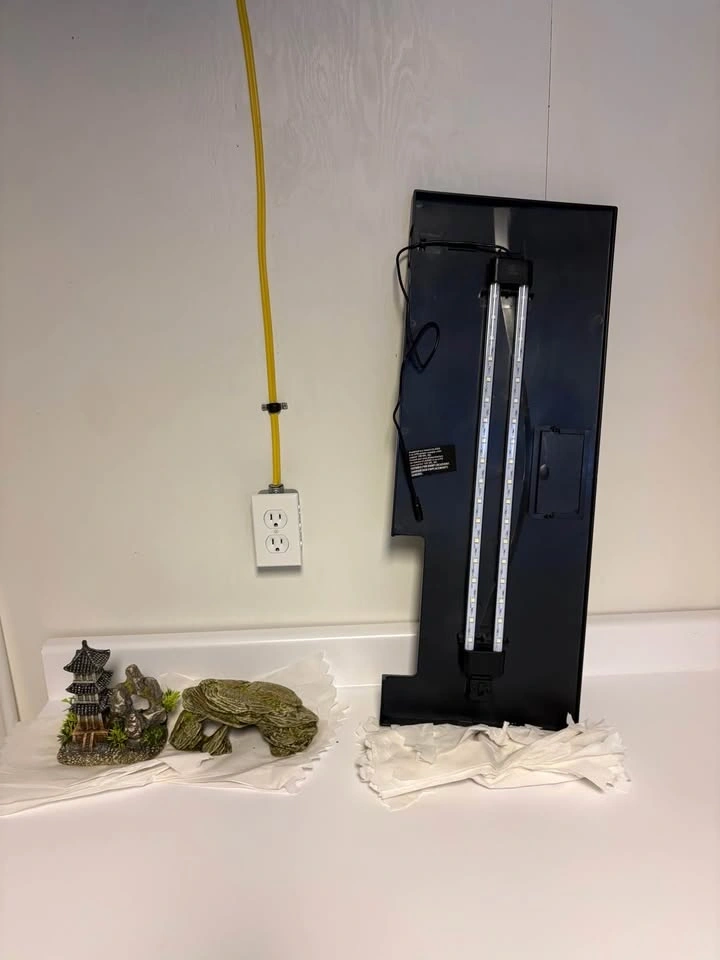 Decors are 2 months old and are $10 each. The LED lid is also 2 months old and came from a Top Fin 29 Gallon Starter Kit for $15. Pick up in the Garden City Area.